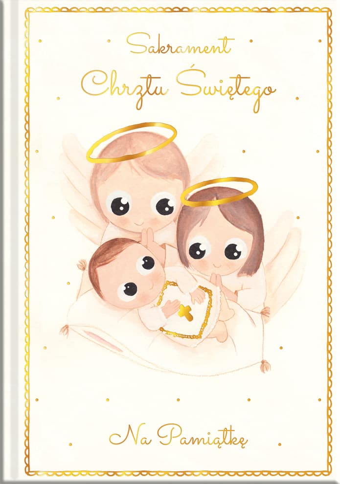 Książeczka na Chrzest w formacie A5. Oprawa twarda złocona.