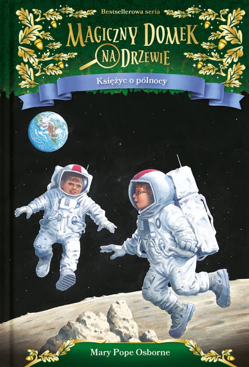 Numer jeden listy bestsellerów „New York Timesa” – „Magiczny domek na drzewie” to przygodowo-edukacyjna seria dla początkujących czytelników. Od 25 lat dzieci na całym świecie podróżują w czasie i przestrzeni z Anią i Jackiem. Trzy… dwa… jeden… START! Magiczny domek na drzewie przenosi Jacka i Anię na Księżyc – i do PRZYSZŁOŚCI! Jakie zadanie ich czeka? Znaleźć ostatni przedmiot oznaczony literą „M”, który pomoże Morgan uwolnić się od zaklęcia. Czy zdążą to zrobić, zanim skończy im się tlen? Czy pomoże im tajemniczy człowiek z księżyca? I dlaczego ich myszka, Fistaszek, zachowuje się tak dziwnie? Ponad 130 milionów sprzedanych egzemplarzy na całym świecie! W serii „Magiczny domek na drzewie” ukazały się: „Dinozaury przed zmrokiem”, „Rycerz o świcie”, „Mumie o poranku”, „Popołudnie z piratami”, „Noc z wojownikami ninja”, „Popołudnie nad Amazonką”, „Epoka lodowcowa o zachodzie słońca”, „Księżyc o północy”, „Nurkowanie z delfinami”, „Słońce zachodzi w mieście duchów”. W serii „Magiczny domek na drzewie. Tropiciele faktów” ukazały się: „Dinozaury”, „Rycerze i zamki”, „Mumie i piramidy”, „Piraci”, „Wojownicy ninja i samurajowie”, „Lasy deszczowe”. Polecamy także: „Misje Merlina. Święta w Camelocie”.