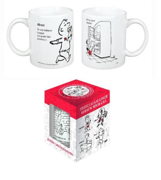 Kubek z wizerunkiem Alcesta, przyjaciela jednego z najbardziej rozpoznawalnych bohaterów literatury i kinematografii dziecięcej w Europie - Mikołajka. Kubek jest zapakowany w sztywne tekturowe pudełko z nadrukiem, co sprawia że idealnie nadaje się na prezent. Można go myć w zmywarce. Wys. 10,5 cm, szer. 10,5 cm. Od wielu lat książki z przygodami Mikołajka cieszą się ogromnym powodzeniem wśród wielbicieli małego urwisa. Przygody Mikołajka, Alcesta i innych jak zawsze rozbawią małych i dużych Mikołajkowa oferta Znaku obejmuje również kolekcję kubków z wizerunkiem Mikołajka oraz jego przyjaciół - Jadwini, Alcesta, Euzebiusza, Kleofasa, Gotfryda i Ananiasza. Wspaniałe ilustracje Sempégo wzbogacone zabawnymi tekstami Goscinny'ego sprawiają, że kubki stanowią doskonały prezent nie tylko dla najmłodszych.