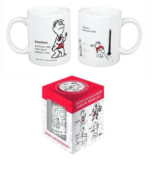 Kubek z wizerunkiem Euzebiusza, przyjaciela jednego z najbardziej rozpoznawalnych bohaterów literatury i kinematografii dziecięcej w Europie - Mikołajka.  Kubek jest zapakowany w sztywne tekturowe pudełko z nadrukiem, co sprawia że idealnie nadaje się na prezent.  Można go myć w zmywarce. Wys. 10,5 cm, szer. 10,5 cm  Od wielu lat książki z przygodami Mikołajka cieszą się ogromnym powodzeniem wśród wielbicieli małego urwisa. Przygody Mikołajka, Alcesta i innych jak zawsze rozbawią małych i dużych. Mikołajkowa oferta Znaku obejmuje również kolekcję kubków z wizerunkiem Mikołajka oraz jego przyjaciół - Jadwini, Alcesta, Euzebiusza, Kleofasa, Gotfryda i Ananiasza. Wspaniałe ilustracje Sempégo wzbogacone zabawnymi tekstami Goscinny'ego sprawiają, że kubki stanowią doskonały prezent nie tylko dla najmłodszych.