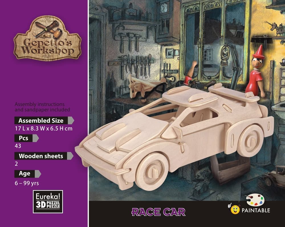 Szczegółowe informacje na temat gry Łamigłówka drewniana Gepetto Samochód rajdowy