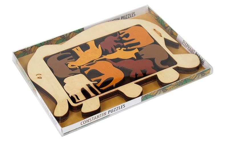 Mówi się, że słonie mają dobrą pamięć i nigdy nie zapominają. Cóż, one nie, ale pracownikowi zoo może się to zdarzyć. Czy pomożesz mu zamknąć wszystkie słonie razem?Jean Claude Constantin jest niewątpliwie jednym z najbardziej zapracowanych projektantów łamigłówek ostatnich trzydziestu lat. Wyjątkowe i różnorodne pomysły, które powstają w jego głowie, przemieniają się w unikalne i wizualnie zachwycające projekty. Łamigłówki Jean Claude'a uznawane są za bardzo wymagające. Aby je rozwiązać, będziesz potrzebował dużej aktywności szarych komórek, odpowiedniej koncentracji i odrobiny wyobraźni.Recent Toys to producent łamigłówek z Holandii. Jak sami o sobie mówią: „Tworzą zagadki dla wszystkich.” Jeżeli lubisz matematykę, logikę, układanie wzorów lub po prostu jesteś cierpliwy i wytrwały, to na pewno znajdziesz coś dla siebie! Choć wszystkie łamigłówki są unikatowe to mają one następujące cechy wspólne:1. Prostota – zagadki są łatwe do wytłumaczenia. Nasz umysł ma się skupić na rozwiązaniu łamigłówki, a nie na zrozumieniu zasad. 2. Mądrość – łamigłówki są zaprojektowane tak, aby zmusić nasz umysł do poszerzenia horyzontów i otwarcia na nowe pomysły. 3. Wytrzymałość – łamigłówki zbudowane są z odpowiednich materiałów. Elementy można przesuwać z wyjątkową łatwością. Chodzą płynnie, szybko i się nie zacinają.Podejmij wyzwanie! Popraw kondycję swojego umysłu!ZAWARTOŚĆ:drewniana "podstawka" - duży słoń (wymiary: 11x15 cm)9 drewnianych słoni