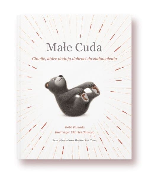 Twoje życie jest wystarczająco cudowne, aby je docenić. Zachwycające ilustracje wykonane piórem i ołówkiem oraz ozdobna okładka sprawiają, że osoba obdarowana poczuje się wyjątkowo. Małe Cuda są zaproszeniem do delektowania się życiem – nawet wtedy, gdy pada deszcz, a dni wydają się zwyczajne. Życie jest darem, Twoim darem. Niedźwiadek tańczy w deszczu, odkrywa piękno przyjaźni, zauważa cuda wokół siebie i uświadamia sobie, że on sam jest jednym z nich. Nawet w trudnych momentach istnieje możliwość, by coś lub kogoś docenić – choćby samego siebie. Na każdej rozkładówce znajdują się ponadczasowa lekcje życiowe oraz miejsce na dedykację, idealnie, by powiedzieć bliskiej osobie, że jest dla nas Cudem. W serii ukazała się również książka Promyki, która przybiera formę afirmacji – krótkich, inspirujących myśli, które mają na celu dodawanie otuchy i motywacji na co dzień. Z kolei Małe Cuda zawierająca mądre lekcje życia przekazywane w formie listów np. Przypatrz się bliżej. Cud chowa się w codzienności. Kiedy potrafimy coś dostrzec, zaczynamy to naprawdę widzieć. O autorze: Kobi Yamada Autor bestselleru Może. Każdy czytelnik odkrywa w jego książkach coś wyjątkowego, co współgra z jego własnymi doświadczeniami i emocjami. Dla jednej osoby może to być opowieść o nadziei, dla innej – refleksja nad odwagą. Ta unikalna zdolność sprawia, że każda lektura staje się osobista i niepowtarzalna. O ilustratorze: Charles Santoso Ilustrator bestsellerów The New York Times i mistrz rysunku. Jego prace wyróżniają się miękkością i delikatnością, nadając książkom ciepły, subtelny charakter. Szczegółowe tekstury – od sierści zwierząt po drobne liście – ożywiają ilustracje.