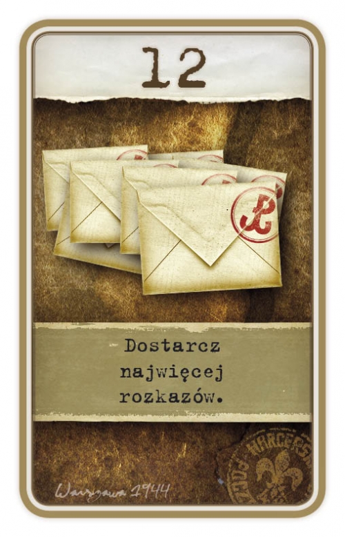 Gra wprowadza młodych graczy w tematykę powstania warszawskiego, nie zawiera elementów przemocy. Gracze wcielają się w zastępowych i dowodzą harcerzami roznoszącymi powstańcze meldunki. Celem gry jest dostarczenie jak najwięcej meldunków pomiędzy dzielnicami Warszawy. Gracze muszą ze sobą współpracować, aby uniknąć blokad utrudniających poruszanie się po planszy. Dodatek „Liberator” wzbogaca grę o nowe zadania: zdobywanie zasobników z bronią i lekami zrzucanymi z samolotów oraz roznoszenie cywilnej poczty. format: 30 x 50 x 7 (cm) liczba graczy: 2-4 osób czas gry: 30 minut
