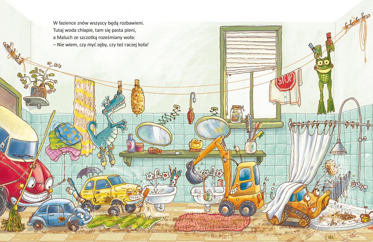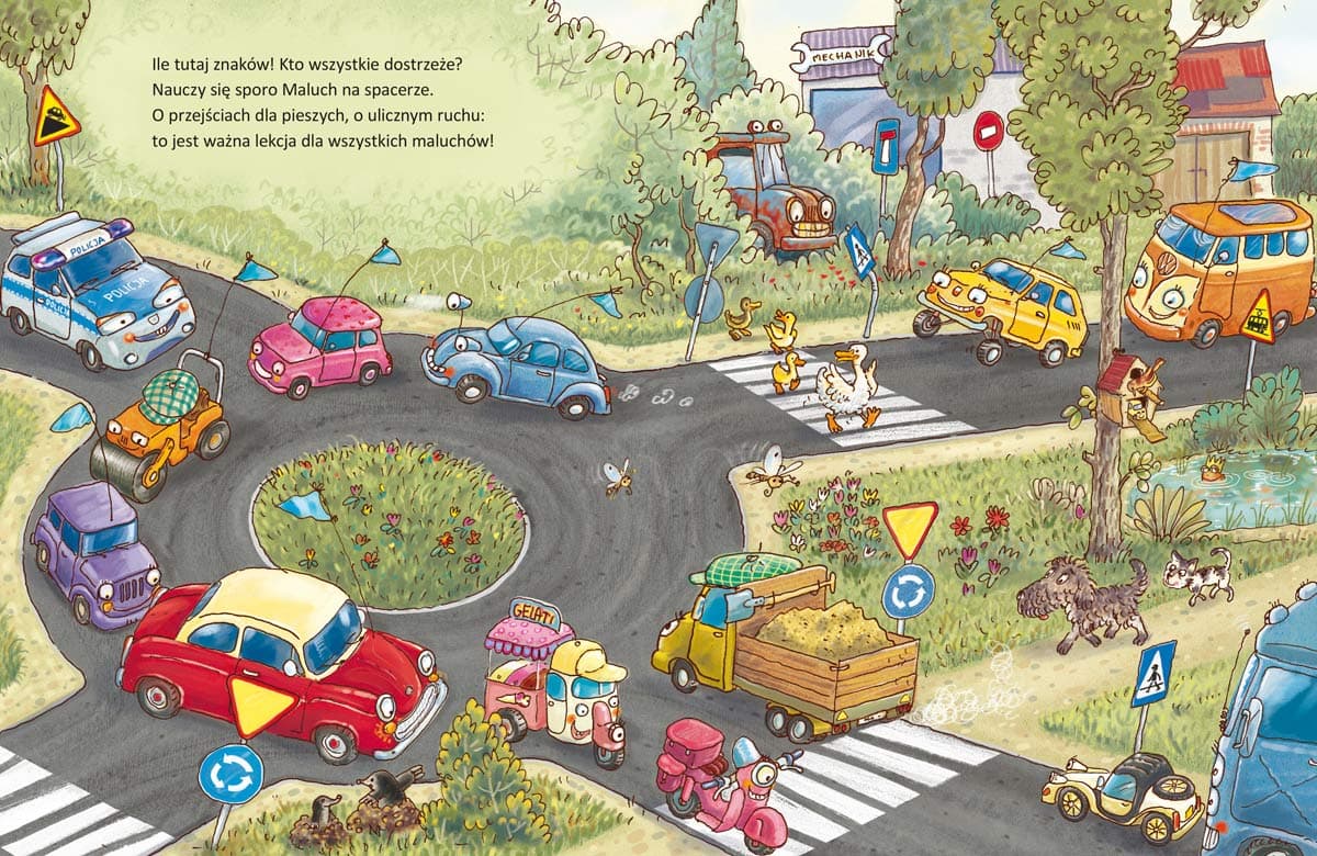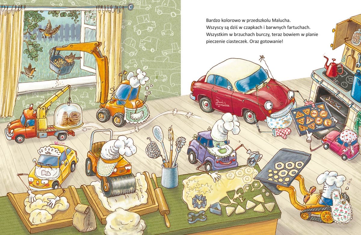 Czy zastanawialiście się kiedyś, jak mógłby wyglądać dzień w samochodowym przedszkolu? Całkiem podobnie jak u dzieci! Są tu koledzy, przytulanki, wspólne zabawy i nauka, czytanie książeczek, spacery, a nawet leżakowanie. W przedszkolu jest fajnie! Izabela Mikrut, autorka wiersza, i Artur Nowicki, twórca ilustracji, zapraszają do świata samochodów.