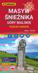 Rodzaj: mapa jednostronna z przewodnikiem turystycznym na odwrocie Skala: 1:35'000 Rok wydania: 2025 Wydanie: 18 Format: B1 (68 x 98 cm) Jest to mapa jednostronna w skali 1:35'000. Przedstawia jedno z wyższych w Sudetach pasm górskich, które zamyka od południa Kotlinę Kłodzką. Masyw Śnieżnika zaliczamy do Sudetów Wschodnich. Zasięg mapy wyznaczają: Bystrzyca Kłodzka na północnym-zachodzie, Międzylesie na południowym-zachodzie oraz Jindrichov na południowym-wschodzie. Obszar mapy obejmuje: Masyw Śnieżnika z najwyższym szczytem Śnieżnikiem (1426 m n.p.m.), Góry Bialskie, Kralicky Sneznik, częściowo także Rychlebske Hory i Góry Złote oraz miasto Stronie Śląskie. Duże zróżnicowanie krajobrazowe, doskonałe zagospodarowanie turystyczne podszczytowego rejonu Śnieżnika z jednej strony i "dzikość" Gór Bialskich z drugiej - to najlepsze atuty tego obszaru. Pobyt w tym regionie z pewnością miło wspominać będą nie tylko turyści piesi, ale także miłośnicy narciarstwa, jazdy rowerowej i konnej, wspinacze skałkowi oraz wędkarze. Na mapie zastosowano cieniowanie w celu uzyskania wrażenia plastyczności rzeźby terenu. Na odwrocie znajduje się informator turystyczny z charakterystyką geograficzną regionu, historią, geologią, atrakcjami turystycznymi, planem Jaskini Niedźwiedziej w Kletnie, wybraną bazą noclegową, szlakami narciarstwa biegowego oraz opisem wybranych miejscowości. Mapa zawiera również plan miast: Międzygórza i Stronia Śląskiego.