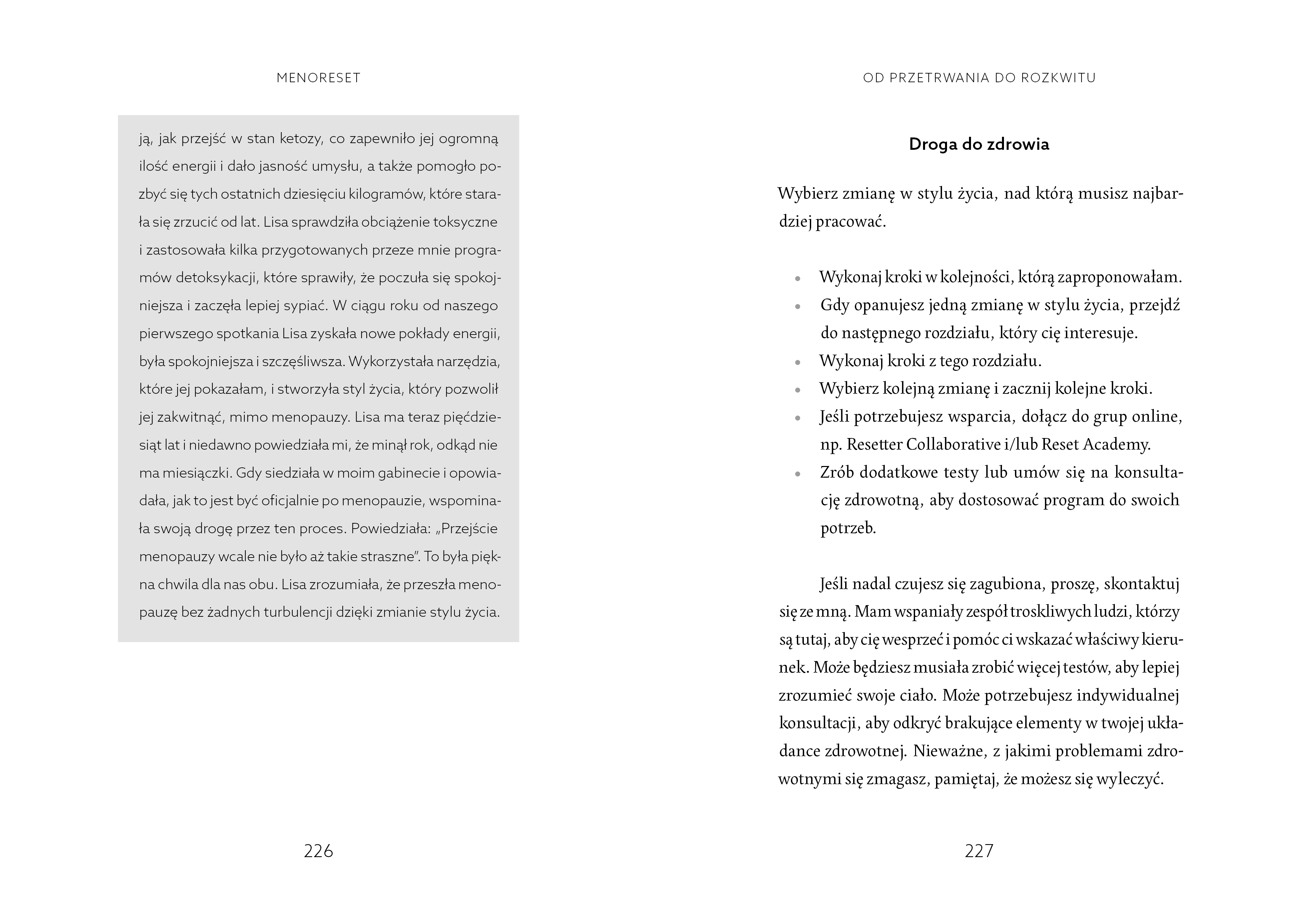 Menopauza nie jest wyczekiwanym etapem życia jakiejkolwiek kobiety. Dla wielu może brzmieć wręcz jak wyrok – tak, teraz zaczną się te wszystkie dolegliwości związane z zaburzeniami hormonalnymi, na pewno się roztyję, no i stanę się przezroczysta dla innych. Czy jedynym ratunkiem jest milczące pogodzenie się z tym, co wcześniej czy później czeka każdą z nas? A może możemy w jakiś sposób temu zaradzić albo wręcz przygotować się na menopauzę? Z nadzieją, że będę mogła samej sobie odpowiedzieć twierdząco na drugie pytanie, sięgnęłam po poradnik zdrowotny doktor Mindy Pelz „Menoreset. Stosuj post, kontroluj objawy menopauzy i poczuj się młodo”. I wiecie, jakie były moje pierwsze spostrzeżenia? Że to książka, która uczy czułości wobec siebie, ale też determinacji. I uświadamia, jak mało wiemy o własnym ciele. Dla mnie to była pierwsza okazja, by usłyszeć o takich pojęciach jak estrobolom i poczuć niemal zawstydzenie, że tak długo żyłam w ignorancji wobec procesów, które codziennie we mnie zachodzą. "Nie pozwól nikomu wmówić sobie, że musisz żyć ze swoimi dolegliwościami". To zdanie nie tylko otwiera oczy, ale staje się iskrą, od której zaczyna się bunt. Bunt przeciwko niewidzialności, przemilczaniu i cierpieniu, które często towarzyszy menopauzie. I po przeczytaniu mogę powiedzieć, że to nie zwykły poradnik, a mapa drogowa dla każdej kobiety, która czuje, że traci kontrolę nad swoim ciałem i życiem, ale nie chce się na to godzić. Bo problem w tym, że nikt nas nie uczy, jak przejść przez ten etap życia. A wręcz słyszymy, że „tak to już jest” i trzeba się z tym pogodzić. A może wystarczy wiedzieć, jak tę drogę przejść? Dr Pelz dzieli się nie tylko wiedzą popartą badaniami naukowymi, ale też własną historią. Historią kobiety, która przez menopauzę przeszła za wcześnie, boleśnie i bez wsparcia. I która postanowiła, że żadna inna kobieta nie powinna czuć się tak zagubiona jak ona. Dużą wagę autorka przywiązuje do postu przerywanego, ale nie jako modnego trendu, lecz jako potężnego narzędzia regulującego gospodarkę hormonalną, wpływającego na mikrobiom, wagę, energię i nastrój. Pokazuje, jak różne rodzaje postów wpływają na ciało kobiety w zależności od fazy cyklu, wieku i indywidualnych potrzeb. Tłumaczy, kiedy jeść, ale też co jeść, skupiając się nie na kaloriach, lecz na makroskładnikach i równowadze odżywczej. Oczywiście, odżywianie to tylko jeden z elementów, który nie może być traktowany w oderwaniu od pozostałych aspektów, które autorka porusza. Znajdziemy tu też historie kobiet, które odzyskały nie tylko energię i sylwetkę, ale też siebie. Swoje „ja”, które zniknęło gdzieś pod warstwami zmęczenia, rozdrażnienia, przyspieszonego bicia serca czy mgły umysłowej. Każdy rozdział kończy się podsumowaniem i prostymi krokami do wdrożenia, które autorka sugeruje wprowadzać stopniowo, aż staną się naszą rutyną. To ważne, bo menopauza nie jest sprintem, ale długim, często dziesięcioletnim maratonem, w którym nasze decyzje mają znaczenie. Jeśli jesteś kobietą w okresie okołomenopauzalnym, już w nim jesteś albo dopiero się do niego zbliżasz – ta książka to prezent, który możesz podarować samej sobie. Nie znajdziesz tu cudownych recept, ale coś znacznie ważniejszego: zrozumienie, nadzieję i poczucie kontroli. I przypomnienie, że jesteś ważna. Zawsze. Nawet, a może szczególnie wtedy, gdy świat zdaje się o tym zapominać.