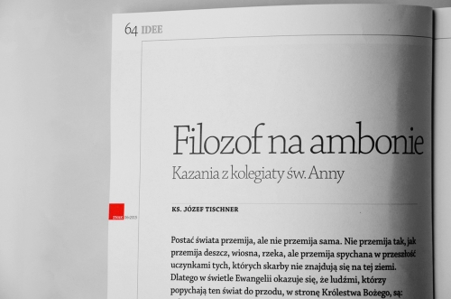 Różnorodność i wieloaspektowość ludzkiego życia została zredukowana do jednej miary. To pieniądz stał się wyznacznikiem wartościowania rzeczywistości. Dlaczego relacje międzyludzkie można dziś określić mianem transakcji? Czy dług i kredyt to podstawowe składniki życia społecznego? Jaką wartość ma życie bez pieniędzy? W temacie: Historyczne układy dłużne , Z Krzysztofem Zamorskim rozmawia Jakub Muchowski Zjawisko finansjalizacji , Wiesław Gumuła Życie pod kreską , Beata Chomątowska Dług metafizyczny , Z Ireneuszem Kania rozmawia Mateusz Burzyk Nic innego się w życiu nie liczy , Z bp. Grzegorzem Rysiem rozmawiają Dominika Kozłowska i Mateusz Burzyk DEBATY Miłość i polityka – zawiłe historie małżeństw izraelsko-palestyńskich w reportażu Marty Zdzieborskiej IDEE Ks. Józef Tischner, czyli filozof na ambonie w niepublikowanych kazaniach z kolegiaty św. Anny KULTURA Bal u Kopciuszka – dlaczego bogata oferta książek dla dzieci i młodzieży z trudem przebija się do praktyki szkolnej?