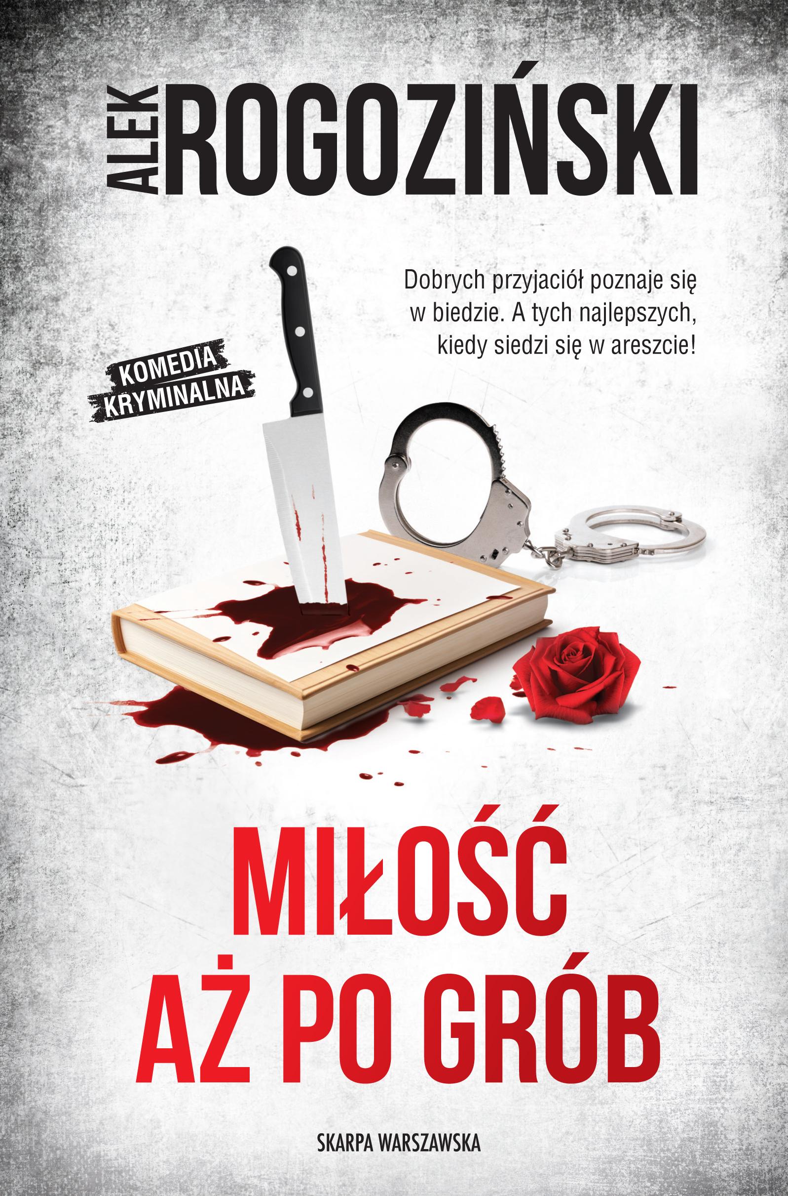 Czasem tylko jedno jest pewne czyli trup, cała reszta to chaos z poplątaniem. Mówiąć w skrócie klops zupełny zwłaszcza dla tego, kto ma motyw by stać za zejściem z tego świata nieszczęśnika. Jak udowodnić, że jest się niewinnym, gdy mało albo zupełnie nic na to nie wskazuje? No cóż pozostaje poprosić o koło ratunkowe kogoś, kto je rzuci, ale czy zrobi to?Wielbiciele jak najbardziej są mile widziani, w końcu kto nie chciałby mieć fanów? Problem zaczyna się w chwili kiedy sympatyk nie do końca nim jest i zaczyna przejawiać to w dość niepokojących poczynaniach. Róża Krull właśnie ma do czynienia z kimś takim, sława ma przecież i ciemniejsze strony, ale jak mroczne one są nie mogła nawet przypuszczać. Czym innym jest pisanie o morderstwach, a co innego kiedy samemu człowiek jest podejrzany o jedno z nich. Wiadomo, że pomyłki zdarzają się, lecz w tej sprawie jakoś tak wszystko zdaje się wskazywać właśnie na słynną pisarkę. Jak wybrnąć z opałów? Wyjście jest tylko jedno - znaleźć prawdziwego zabójcę. Tyle, że niezwykle trudno dokonać takiego wyczynu, kiedy jest się gościem aresztu, a i wydawnictwo dopomina się o nową książkę. Ale kto jak kto, lecz Róża ma przecież przyjaciół, a oni gotowi są na wiele, by udowodnić jej niewinność. Ich sposoby są może czasem dość ryzykowne, jednak nie da odmówić się im uporu, sprytu i śledczej intuicji!Jedni bohaterowie zapadają w pamięć gdyż są charyzmatyczni, inni swoim zachowaniem, są i tacy, jakich humor nie pozwala o nich zapomnieć. No i oczywiście jest Róża Krull oraz jej świta vel zgrane grono przyjaciół. Każde z osobna jest osobowością barwną, przyciągającą uwagę, a jako grupa mało mają sobie równych. W „Miłości aż po grób" naprawdę pokazuje na co ich stać, a jak się okazuje w obliczu prawdziwie zabójczej zagadki dają z siebie jeszcze więcej niż zazwyczaj, oczywiście pozostając sobą. Tym razem zamieszanie jest większe niż zazwyczaj, chociaż z tego samego powodu czyli jedynej w swoim rodzaju, bestsellerowej pisarki. Zagadka kryminalna swoim skomplikowaniem dorównuje klasyce swego gatunku, a nie jeden sławny śledczy, bądź śledcza, mieliby porządny ból głowy od prób rozwiązania. Czytelnik także nie oprze się pokusie rozwiązania prawdziwego węzła gordyjskiego lub mówiąc inaczej odkrycia kto zabił. Tropów jest kilka, natomiast podejrzana jest jedna i wszystko wskazuje, że jest winna. Oczywiście „Miłość aż po grób" to komedia kryminalna, co oznacza, że humoru nie brakuje, wytrawnego, by nie rzec czarnego, lecz jak najbardziej splecionego nierozerwalnie z akcją. Alek Rogoziński mistrzowsko wplata znaki zapytania w rozgrywające się wydarzenia i dozuje odpowiedzi, w odpowiednich momentach dokonuje fabularnej volty, a to wszystko okraszone jest komizmem sytuacyjnym oraz oczywiście dialogami, w jakich nie brakuje ciętych ripost.
