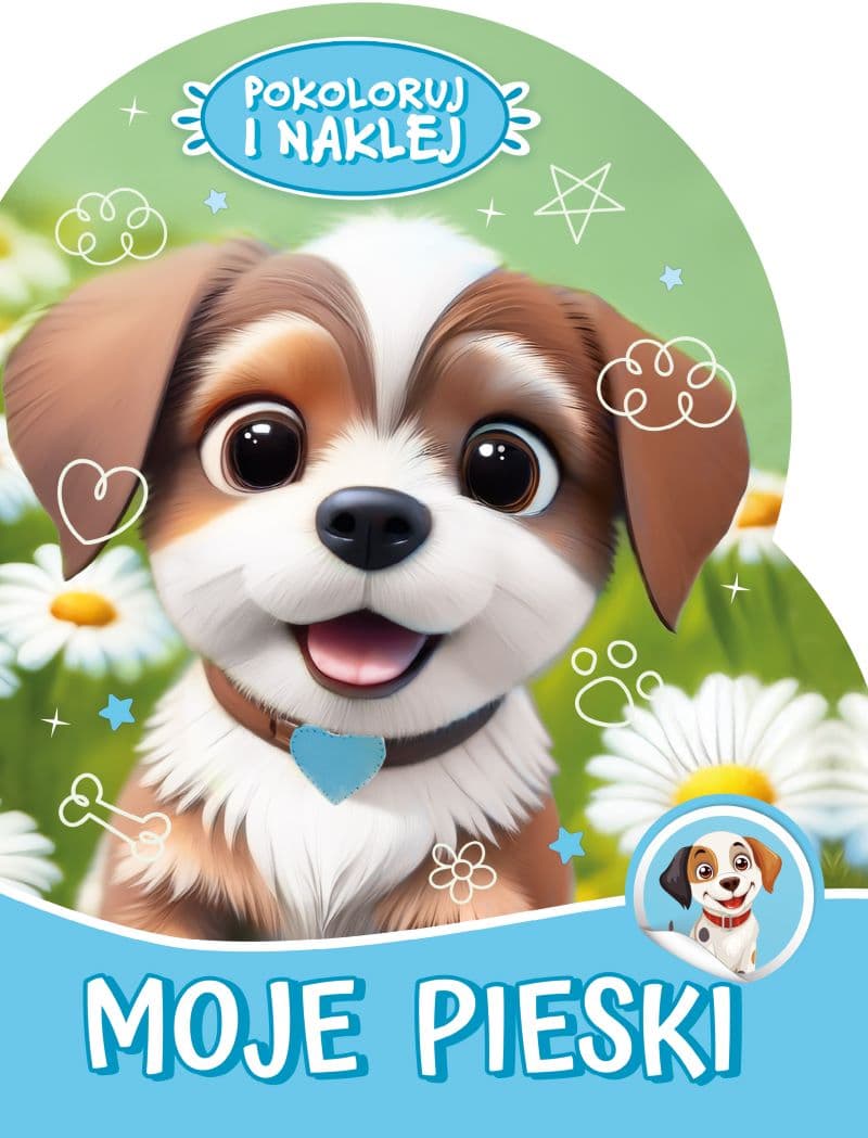 W części Moje pieski mali twórcy spotkają wesołe psiaki – bawiące się, odpoczywające i pomagające swoim opiekunom. Każdy obrazek opatrzony jest krótkim opisem, który rozwija wyobraźnię i pobudza ciekawość. Zestaw uzupełniają piękne naklejki, które sprawią, że kolorowanie stanie się jeszcze bardziej radosne.