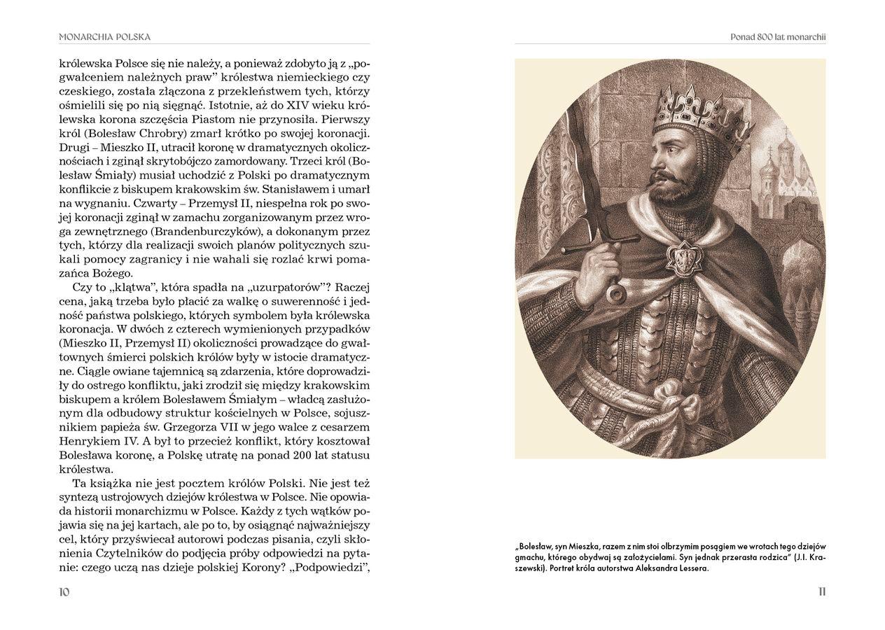Nie byłoby królestwa w Polsce, gdyby nie chrzest Mieszka I oraz ustanowienie w 1000 roku hierarchicznego ładu polskiego Kościoła – pisze prof. Grzegorz Kucharczyk, autor wielu poczytnych książek historycznych. Zjednoczenie ziem polskich pod berłem królewskim przez Bolesława Chrobrego w roku 1025 było dowodem wielkości państwa oraz jego suwerenności. Od początków nasi władcy, tak samo ich poddani, zorientowani byli na współpracę z papieskim Rzymem, a rola Kościoła jako gwaranta nie tylko szerzenia i pogłębiania nauki ewangelicznej, ale także jedności narodowej nigdy nie była podważana. Aż do czasów komunistycznych i do dnia dzisiejszego, kiedy władza oświadcza wprost, że będzie katolików „opiłowywać”. Przy okazji redukuje się do minimum uczciwą edukację historyczną w szkołach – są to wszystko działania antypolskie. Ta książka jest natomiast znakomitym narzędziem do umacniania patriotyzmu oraz uzupełniania wiedzy o państwie polskim, które przez ponad 800 lat było monarchią. Autor, świetnie władający językiem literackim, dokonuje syntezy panowania naszych królów od Chrobrego aż po Królestwo Kongresowe. A nawet po wiek XX, bowiem prof. Kucharczyk na koniec słusznie stwierdza: „Mieliśmy szczęście żyć w czasach, gdy naszą wspólnotę umacniali dwaj niekoronowani królowie Polski – bł. kardynał Stefan Wyszyński, Prymas Polski, oraz św. Jan Paweł II”. Monarchia wydaje się przestarzałym systemem rządzenia, choć nie wszyscy są tego zdania. Z drugiej jednak strony, najwspanialsze czasy i największe dokonania naszego narodu przypadają właśnie na okresy rządów wybitnych władców koronowanych. Jakże przyjemnie o tym się czyta… Silna monarchia gwarantowała bezpieczeństwo i dobrobyt obywateli oraz rozwój kraju, gdy współczesne systemy demokratyczne nadzwyczaj łatwo ulegają manipulacji. Mogą też szybko przeradzać się w tyranię lub osłabiać państwo; tak było zresztą niegdyś ze słynną demokracją szlachecką. A co dziś dzieje się z demokracją? Czytając tę książkę, zaczynamy marzyć: nie ma to jak dobry i sprawiedliwy król… A jak nie król, to przynajmniej prezydent i premier… Jak się jednak okazuje, o nich jeszcze trudniej niż o godziwego króla.
