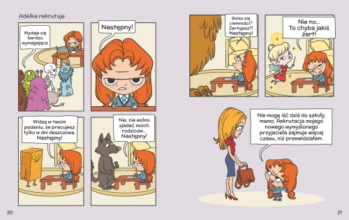 Spora dawka czarnego humoru i szczypta czułości – oto przepis Adelki na to, jak przeżyć w świecie, w którym nikt nie traktuje dzieci poważnie! Adelka byłaby zwykłą, uroczą dziewczynką z rudymi włosami i wielką głową, gdyby nie fakt, że szkoli się w byciu dyktatorem i świetnie udaje jej się wprowadzać terror w domu i w szkole. Bezskutecznie, ale nie poddając się, próbuje pozbyć się kota, który okazał się nie być lwem (co za rozczarowanie!). Nie interesują jej amory… no chyba że dzięki nim zyska kogoś na kształt niewolnika. Kusząca perspektywa… Jeśli wydawało wam się, że to dorośli rządzą światem – byliście w błędzie! Witajcie w świecie Adelki – dziewczynki, której nie da się polubić, ale też nie można jej nie pokochać! Fenomen we Francji – ponad 2 miliony sprzedanych egzemplarzy!
