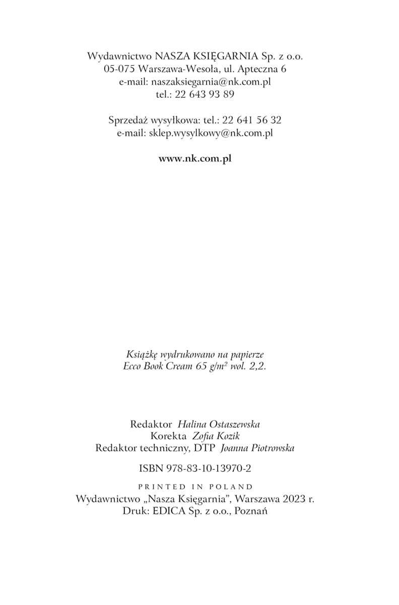 | Podmiot odpowiedzialny: | Wydawnictwo Nasza Księgarnia Ul. Apteczna 6 05-075 Warszawa-Wesoła PL e-mail: [email protected] |