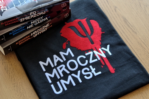 100% bawełna 190 g Nadruk: termonadruk zamszowy flock odporny na pranie do 60 st. (zalecana temp. 40 st.). Zalecane pranie na lewej stronie. Można prasować w temp. Do 170 st. Wszystkie książki z serii "Mroczne umysły" kupisz tutaj: