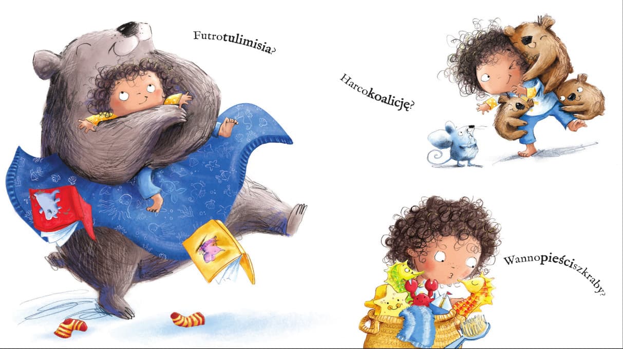 W tej pełnej głuptaskowatych harców opowiastce o mocy przytulania znajdziecie mnóstwo przytulastych zabaw językowych. Czy zastanawialiście się kiedyś, kto NAJLEPIEJ przytula? Ktoś, kto jest miękki i cieplutki? A może ktoś, kto umie wyściskać, ale tak niezbyt mocno? Od niedźwiedzich uścisków poprzez harcokoalicje, aż po objęcia pingwina – jest mnóstwo uścisków do wyboru. Ale ten idealny uścisk może być bardzo blisko, na wyciągnięcie ręki. Najlepszy przytulas połączy cię z kimś, kto cię bardzo kocha!
