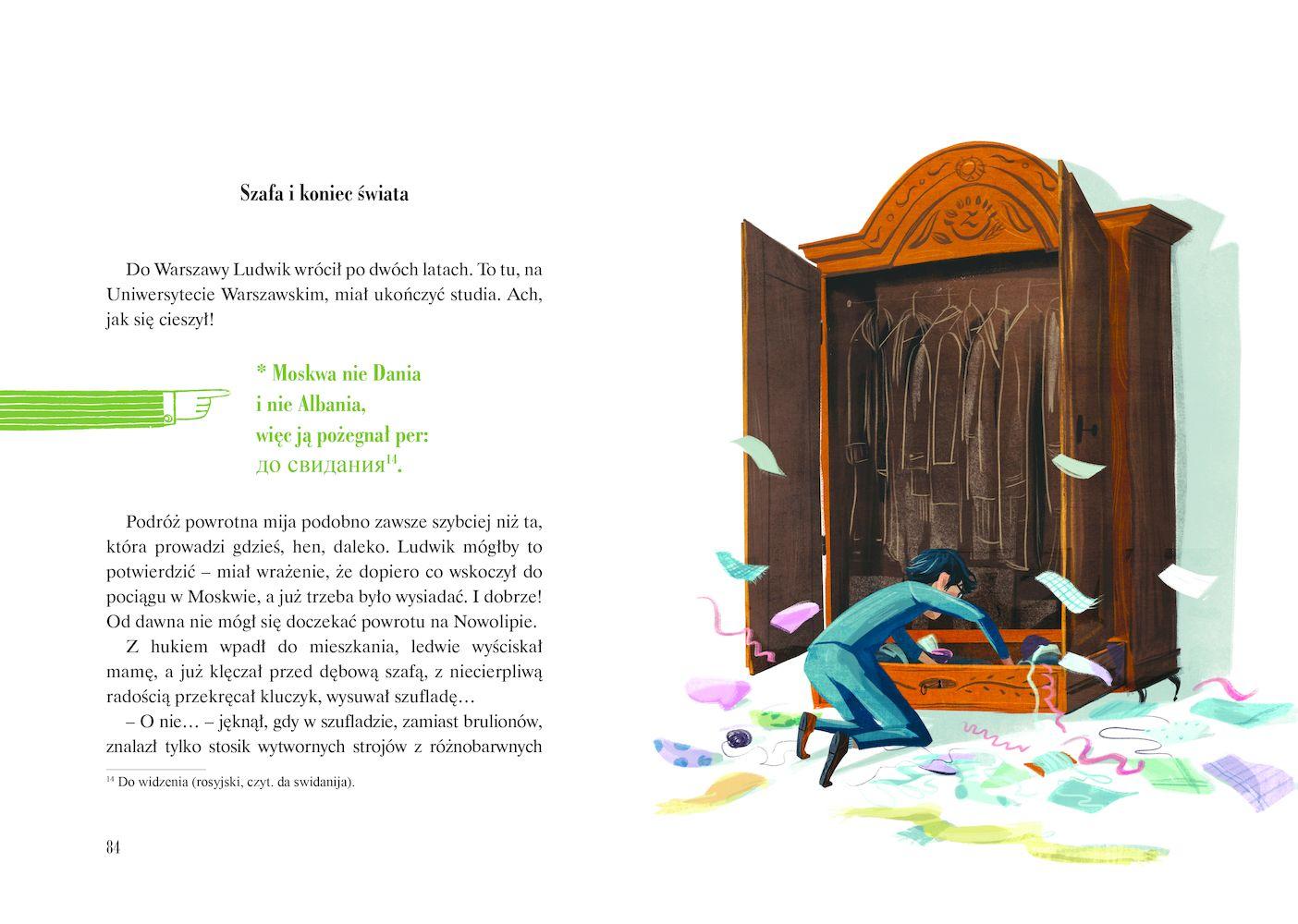 Literacka biografia Ludwika Zamenhofa. W wielokulturowym Białymstoku, gdzie urodził się i mieszkał mały Ludwik, panował niezły językowy galimatias. Zafascynowany mieszanką języków i biblijną opowieścią o wieży Babel chłopiec wymarzył sobie język, którym posługiwaliby się ludzie na całym świecie. Tak powstało esperanto. Ludwik Zamenhof, okulista, który stworzył ten sztuczny język międzynarodowy i wydał podręcznik do jego nauki, został ośmiokrotnie nominowany do Pokojowej Nagrody Nobla. Dziś znany jest na całej kuli ziemskiej, a esperanto stało się najbardziej rozpowszechnionym międzynarodowym językiem pomocniczym.Szczegółowe informacje na temat książki Nie krokodyluj! O drodze Ludwika Zamenhofa do języka esperanto
