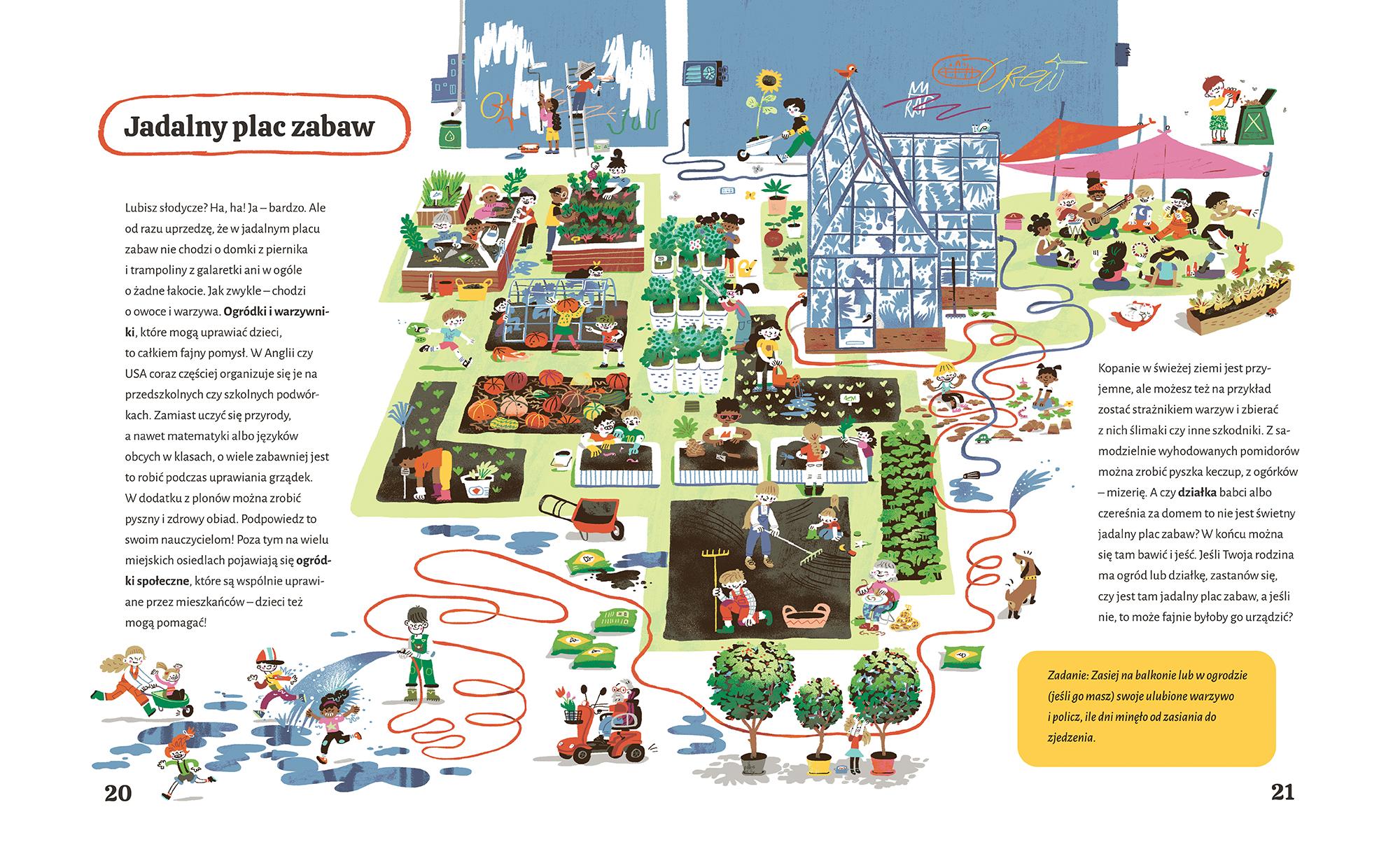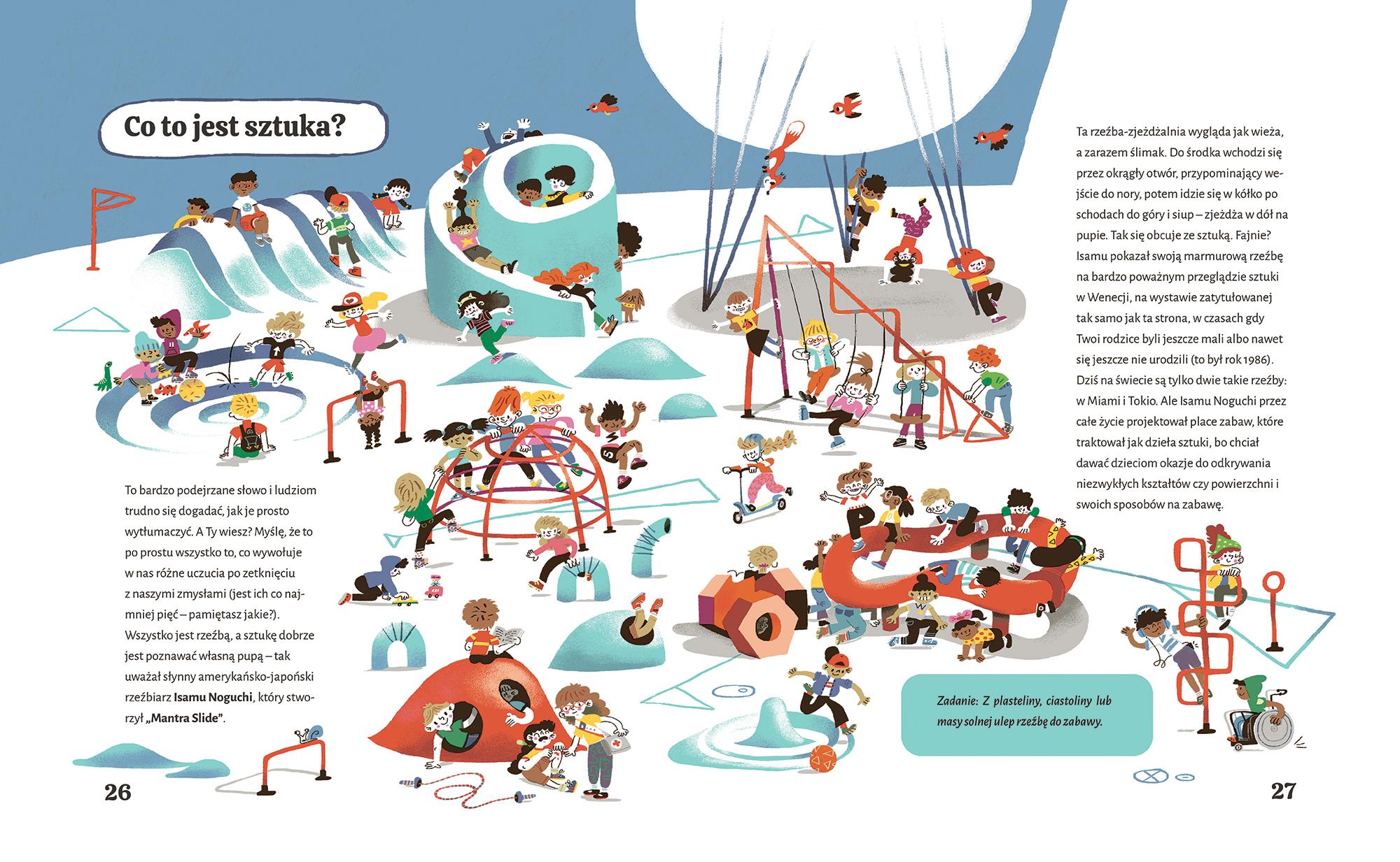 Zaskoczy was, ile on może mieć różnych form, jak pomysłowo można go zorganizować, ilu dorosłych nad nim główkuje i jak łatwo przychodzi dzieciom stworzenie go w dowolnym miejscu i w każdej chwili. Choć trzeba przyznać, że plac zabaw to też zupełnie niepoważna sprawa. Często dzieci zapominają tu o całym świecie, ganiają się, brudzą, wygłupiają – i nie chcą wracać do domu. Macie rację! Najdziwniejsze jest to, że mało kto się nad tym wszystkim tak na serio zastanawia, więc chyba więcej niż o placach zabaw wiemy o dinozaurach! Dlatego zapraszamy na wyprawę przez 22 place zabaw dookoła świata!!! Pssst, Rodzice! Wiecie, od czego można zacząć edukację przestrzenną? Jak ćwiczyć z dziećmi wyobraźnię, zmysł estetyki, empatię, uważność i kreatywność? Wybierzcie się razem na najróżniejsze place zabaw, przyglądajcie się im i rozmawiajcie o nich! W tej książce znajdziecie też mnóstwo pomysłów na rozwijające zabawy!Szczegółowe informacje na temat książki Nie tylko place zabaw!