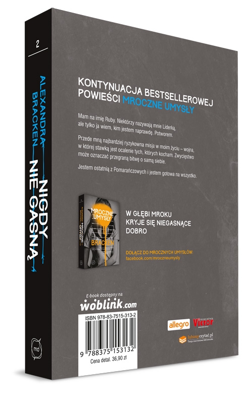 Kontynuacja bestsellerowej powieści „Mroczne umysły” Mam na imię Ruby. Niektórzy nazywają mnie Liderką, ale tylko ja wiem, kim jestem naprawdę. Potworem. Przede mną najbardziej ryzykowana misja w moim życiu – wojna, w której stawką jest ocalenie tych, których kocham. Zwycięstwo może oznaczać przegraną bitwę o samą siebie. Jestem ostatnią z Pomarańczowych i jestem gotowa na wszystko.