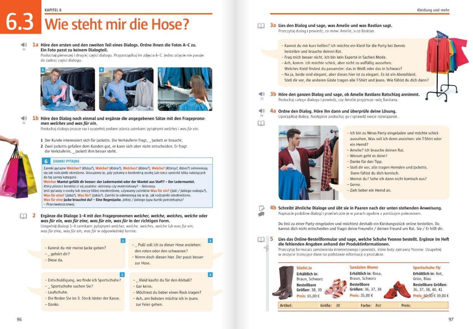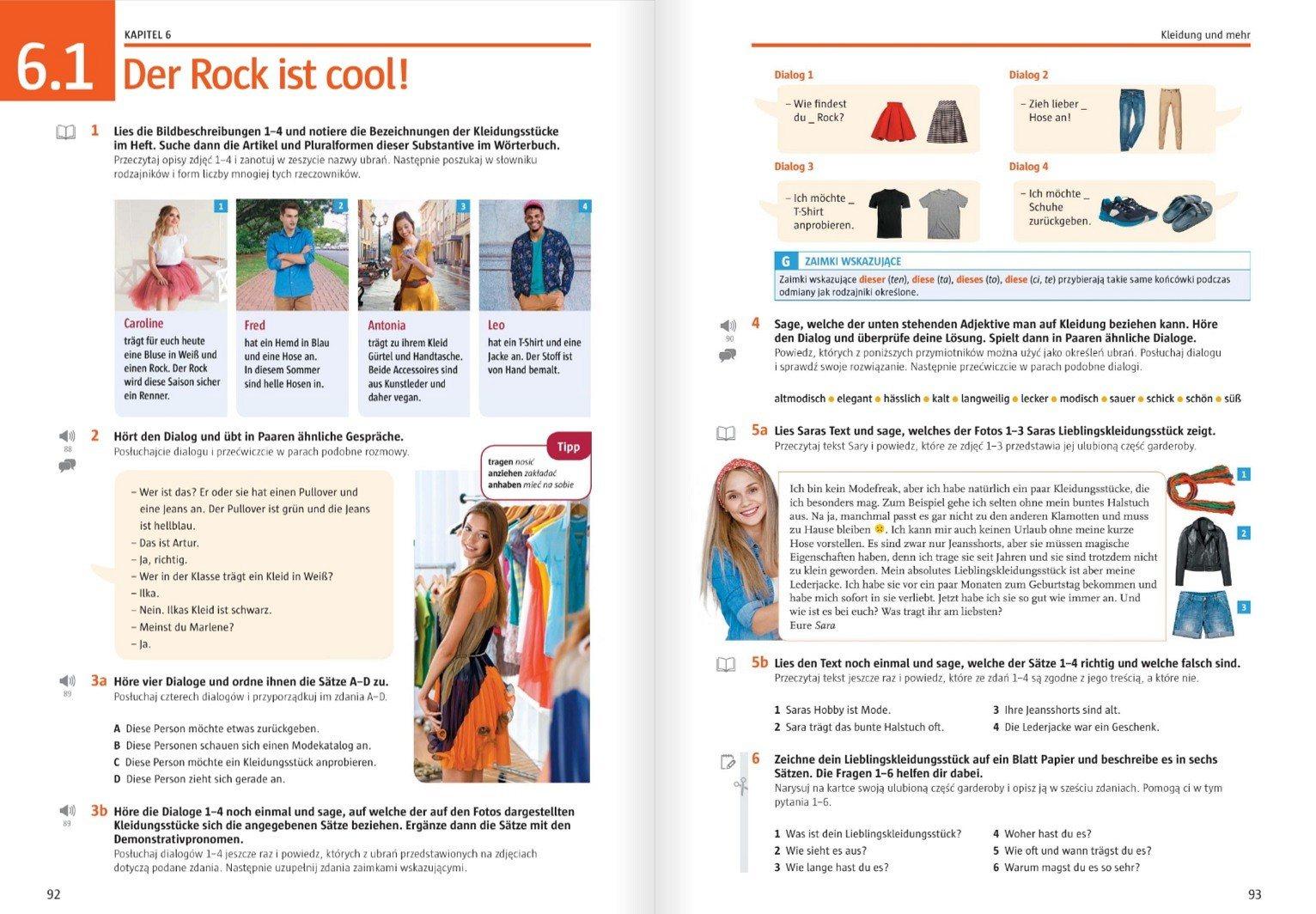 Podręczniki podzielone są na przejrzyste sekcje tematyczne: gramatyczne, Dialogtraining rozwijającą umiejętność prowadzenia rozmów w języku niemieckim, Projekte motywującą uczniów do pracy projektowej oraz sekcje Extras z dodatkowymi materiałami.