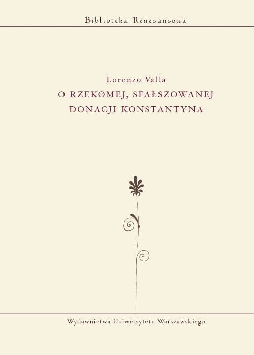 Przekład łacińskojęzycznego traktatu Lorenzo Valli z 1440 r. Autor zajmuje się kwestią autentyczności tak zwanej Donacji Konstantyna, dokumentu pochodzącego rzekomo od cesarza Konstantyna Wielkiego, a w rzeczywistości powstałego - jak się go obecnie datuje - na przełomie VIII i IX w. Dokument ten utrzymuje, że Konstantyn podarował Kościołowi rzymskiemu całą zachodnią część Cesarstwa Rzymskiego. Traktat ma formę ?mowy w obronie prawdy?, Valla posługuje się w nim całym wachlarzem argumentów z zakresu prawa, historii i historiografii, religii, polityki itp.., żeby wykazać niemożliwość przeprowadzenia takiej darowizny.