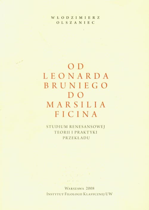 Od Leonarda Bruniego do Marsilia Ficina Studium renesansowej teorii i praktyki przekładu Włodzimierz Olszaniec Książka