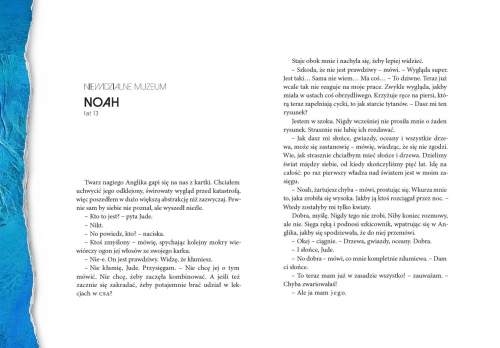 Ta powieść jest absolutnie niezwykła i oryginalna. Została napisana z perspektywy Noah'a, kiedy miał 13 lat, oraz szesnastoletniej Jude. Ten zabieg sprawia, że lektura wydaję się być jeszcze bardziej intrygująca. Jestem wielką miłośniczką sztuki, więc jej motyw był jak najbardziej na miejscu.