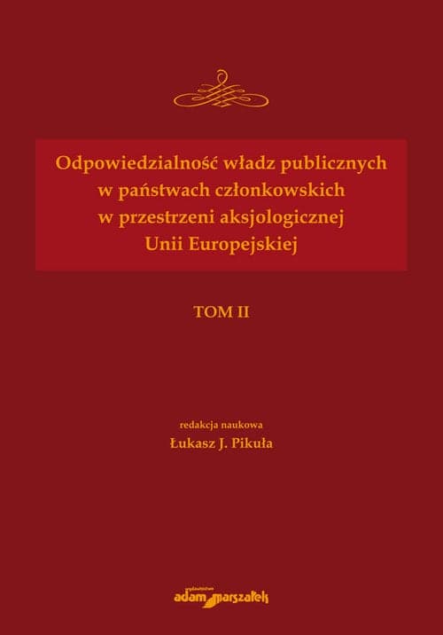 Oddawany do rąk Czytelnika tom drugi jest kontynuacją podjętej już wcześniej problematyki z zakresu odpowiedzialności władz publicznych w państwach członkowskich w przestrzeni aksjologicznej Unii Europejskiej. Kwestia ta, jak powiedzieliśmy, od dawna wzbudza zainetersowanie badaczy i myślicieli różnej proweniencji, czego najlepszym, potwierdzeniem jest niniejsza publikacja, która ma za zadanie konsekwentnie posuwać naprzód przedmiotową dyskusję, przy jednoczesnym założeniu, że jej celem będzie nie tylko poznanie i formowanie, lecz przede wszystkim coraz lepsze i spójniejsze, a tym samym dążące i zbliżające nas do całościowego ujęcia pojmowanie fenomenu szeroko rozumianej odpowiedzialności władzy publicznej. Łukasz J. Pikuła