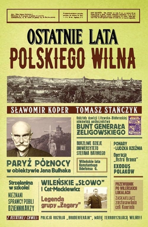 Barwny życiorys legendarnego miasta. Foto-plastikon historyczny, ciekawostki i nieznane szczegóły wielkich wydarzeń. Obrazy zapadające w pamięć. Galeria pomnikowych postaci, które ożywają pod drapieżnym piórem tandemu Koper-Stańczyk. Czy Polska może istnieć bez Wilna? Ostatnie siedemdziesiąt lat udowadnia, że jest to możliwe, ale polska dusza mocno straciła na tej separacji. Jak magię miasta, porównywanego do Paryża i Jerozolimy, jedną ze stolic polskiej przedwojennej kultury i elegancji przełożyć na język zrozumiały dla współczesnego pokolenia? Wehikuł czasu prowadzony wprawną ręką znanych popularyzatorów historii; Sławomira Kopra i Tomasza Stańczyka zaprasza na pokład. 1. Młodość Piłsudskiego w Wilnie 2. "Bunt" na rozkaz generała Żeligowskiego i Litwa Środkowa. Lata 1920-1922 3. Wileńskie nekropolie i wileńska mafia przestępcza (największa w II RP) 4. Stanisław Cat Mackiewicz i ogólnopolski sukces prowincjonalnego "Słowa" 5. Teatr Reduta w Wilnie i Juliusz Osterwa 6. Wileńscy literaci i grupa poetycka „Żagary” 7. Siostra Faustyna, święta i inne wileńskie mistyczki 8. Ponary - "ludzka rzeźnia", masowe rozstrzeliwania Żydów i Polaków 9. Operacja Ostra Brama 1944 r. , więzienie na Łukiszkach i represje wobec AK-owców 10. Exodus Polaków z Wilna Sarmacka gawęda historyczna o kresowej stolicy i reporterskie śledztwo w jednym. Imponujący zestaw zdjęć i ilustracji. Plotki i skandale. Polskie Wilno powraca triumfalnie na kartach książki Sławomira Kopra i Tomasza Stańczyka