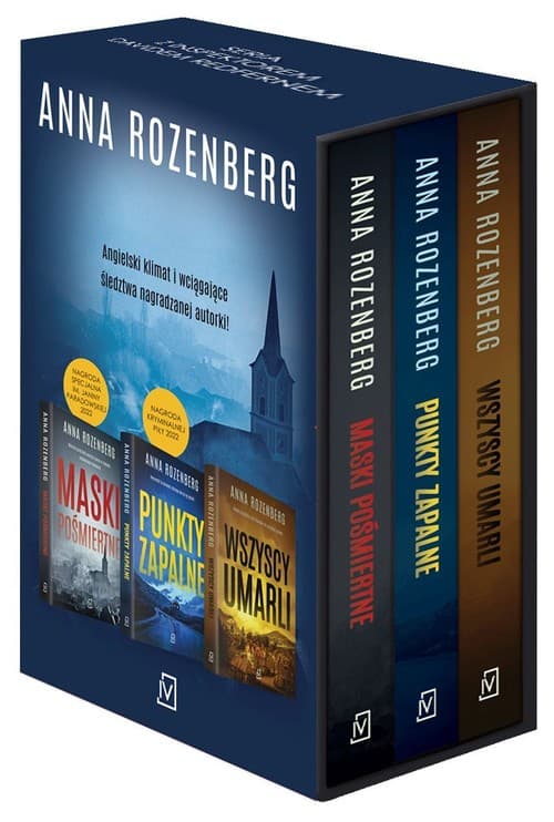 Angielski klimat i wciągające śledztwa nagradzanej autorki. Poznaj inspektora Redferna! "Maski pośmiertne" Mroczna przeszłość powraca zawsze w najmniej oczekiwanym momencie. Lipiec 2013 roku. Inspektor David Redfern otrzymuje wezwanie do akcji udaremnienia zamachu w katedrze w Guildford. W czasie interwencji odkrywa, że terrorystą jest jego dawny przyjaciel i partner, Adrian Bones. Broniąc się przed niezrównoważonym napastnikiem, policjant oddaje śmiertelny strzał. Wkrótce targany poczuciem winy opuszcza Guildford i rozpoczyna służbę w Woking. Niedługo w miasteczku znalezione zostają zmasakrowane zwłoki. Ofiarą brutalnego mordu jest polska turystka. Kobieta przyjechała do Anglii z mężem, który teraz zaginął bez śladu. Pierwsze śledztwo Redferna szybko się komplikuje – współpracownicy są nieufni, a materiał dowodowy niczego tak naprawdę nie wyjaśnia. Śmierć Polki to jednak niejedyna zagadka, którą Redfern musi rozwiązać. W Dover wyłowiono ciało mężczyzny. Topielec to zastrzelony przez Davida Adrian Bones. Policjant bez chwili zawahania rozpoczyna prywatne śledztwo. Nie podejrzewa, że ktoś zapragnie uciszyć go za wszelką cenę. "Punkty zapalne" Policja w Woking rozpoczyna poszukiwania kilkuletniej Izy Wolańskiej, córki polskiej imigrantki. Pogrążona w rozpaczy matka dziewczynki nie potrafi w żaden sposób pomóc funkcjonariuszom, natomiast brak jakiegokolwiek tropu nie pozwala wytypować podejrzanych ani nawet wskazać motywu ich działania. Funkcjonariusze czują, że upływający czas nieubłaganie zmniejsza szansę na uratowanie dziecka. W tym samym czasie Redfernowi przydzielone zostaje śledztwo w sprawie brutalnego morderstwa przy Monument Road. W spływającym krwią pokoju odnaleziono ciała pięćdziesięcioletniego taksówkarza, Muztara Abbasiego, i jego żony. Początkowo policjant zakłada, że ma do czynienia ze zbrodnią na tle religijnym. Wkrótce znika jednak także syn ofiar i sprawa przyjmuje nieoczekiwany obrót… Usiłując odnaleźć zaginioną dziewczynkę i wyjaśnić zagadkę mrożącego krew w żyłach morderstwa, Redfern nie może zapomnieć o własnych problemach – tajemniczy mężczyzna, który pozostaje nieuchwytny, zagraża już nie tylko jemu, ale też jego bliskim. Czy inspektorowi uda się zatrzymać nieznajomego, zanim ten posunie się o krok za daleko? "Wszyscy umarli" Kiedy bliska osoba znika bez śladu, wszystko inne przestaje mieć znaczenie. Inspektor David Redfern gotów jest rzucić pracę w policji w Woking, żeby tylko mieć czas na poszukiwanie zaginionej przyjaciółki. Jednak życie ma wobec niego inne plany. W spokojnym miasteczku Pirbright, położonym nieopodal Woking, dochodzi do morderstwa lokalnego hodowcy koni. Choć Kenneth O’Malley zdecydowanie wolał towarzystwo zwierząt niż ludzi, trudno szukać w tym motywu zbrodni. Mieszkańcy, początkowo wstrząśnięci zabójstwem, szybko skrywają się za murem obojętności i kłamstw. Inspektor będzie musiał odkryć, który z nich pewnej jesiennej nocy spotkał się z ofiarą na zabytkowym cmentarzu. Na tym jednak problemy się nie kończą. Rzucając się w wir pracy, inspektor straci z oczu głównego przeciwnika – tajemniczego Palacza, który wciąż zagraża bliskim Redferna. Jaką cenę będzie musiał zapłacić za swoją nieostrożność? "Wszyscy umarli" to zaproszenie do udziału w śledztwie zmierzającym w nieoczywistym kierunku. To kryminał pełen emocji i zwrotów akcji, którego finał zaskoczy zarówno czytelników, jak i samego Davida Redferna.