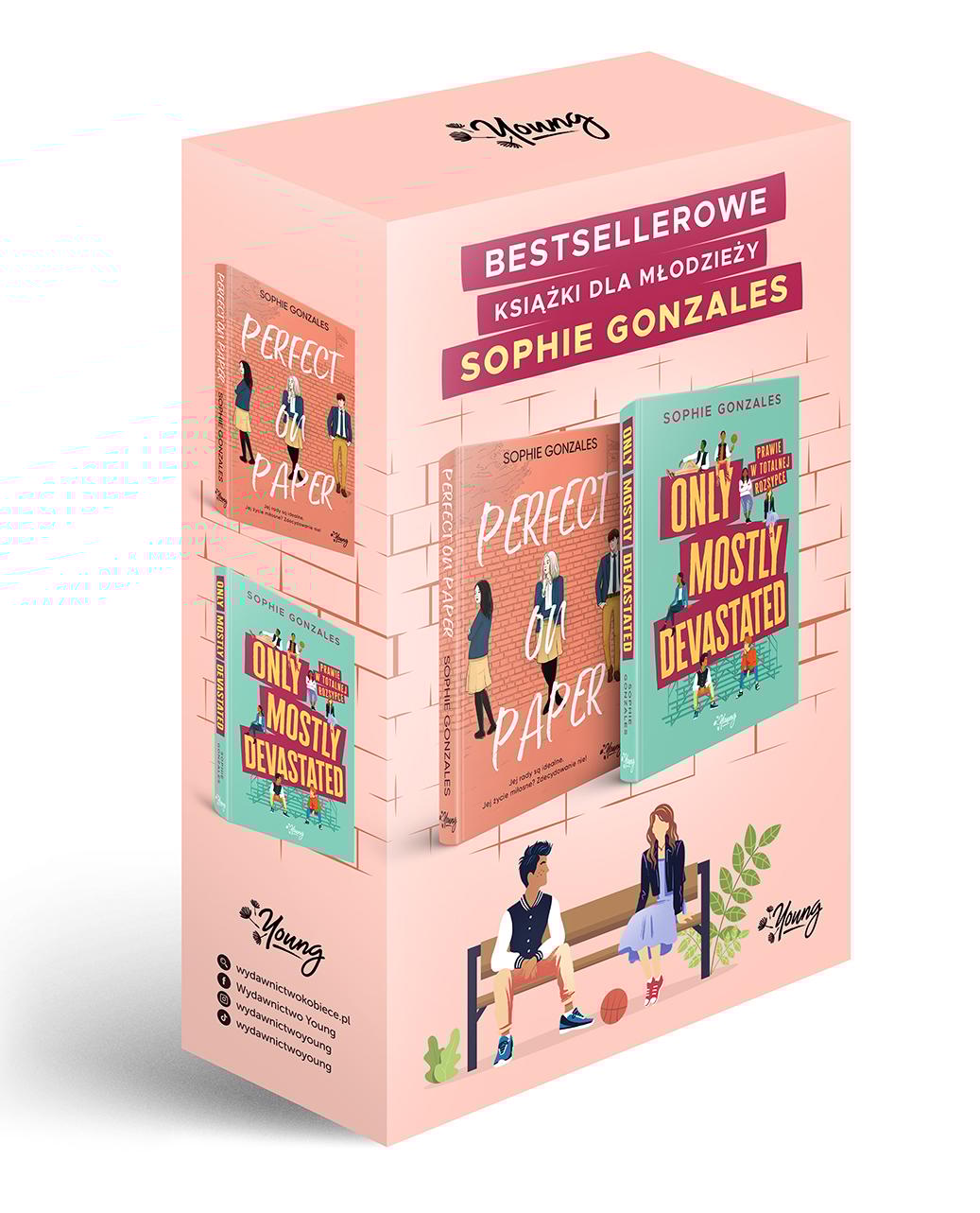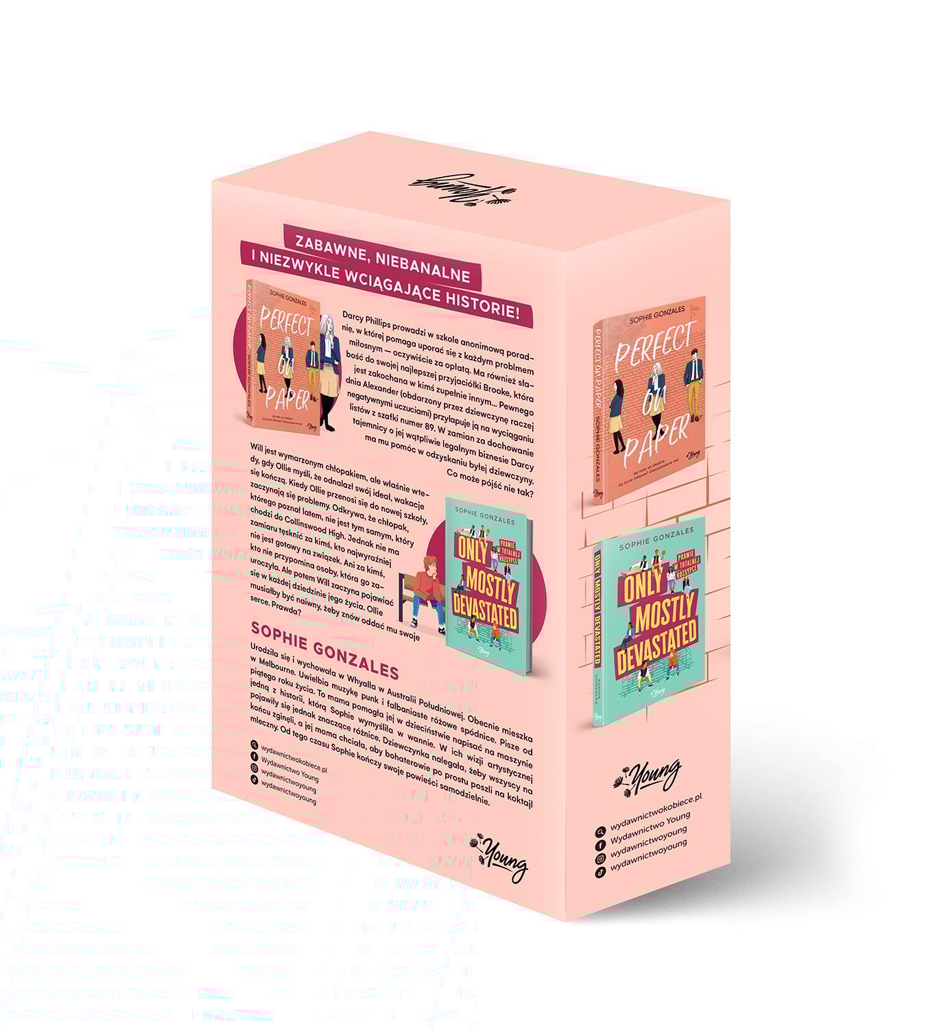 Dwupak bestsellerów Sophie Gonzales „Perfect on paper” Jej rady są idealne. Jej życie miłosne? Zdecydowanie nie! Darcy Phillips prowadzi w szkole anonimową poradnię, w której pomaga uporać się z każdym problemem miłosnym – oczywiście za opłatą. Ma również słabość do swojej najlepszej przyjaciółki Brooke, która jest zakochana w kimś zupełnie innym... Wszystko idzie dobrze aż do dnia, kiedy Alexander (obdarzony przez dziewczynę raczej negatywnymi uczuciami) przyłapuje ją na wyciąganiu listów z szafki numer 89. W zamian za dochowanie tajemnicy o jej wątpliwie legalnym biznesie Darcy ma mu pomóc w odzyskaniu byłej dziewczyny. W teorii wszystko wydaje się proste. Co może pójść nie tak? „Only mostly devastated” Czasem miłość zostawia nas… prawie w totalnej rozsypce. Will to wymarzony chłopak – jest życzliwy, nie wstydzi się swoich uczuć, można z nim rozmawiać godzinami. Ale właśnie wtedy, gdy Ollie myśli, że odnalazł swój ideał, wakacje się kończą, a Will przestaje odpisywać. Gdy Ollie przenosi się do nowej szkoły, zaczynają się problemy. Odkrywa, że chłopak, którego poznał latem, nie jest tym samym, który uczęszcza do Collinswood High. Jednak nie ma zamiaru tęsknić za kimś, kto najwyraźniej nie jest gotowy na związek. Ani za kimś, kto nawet w jednym procencie nie przypomina osoby, która go zauroczyła. Ale potem Will zaczyna pojawiać się w każdej dziedzinie jego życia. Ollie musiałby być naiwny, żeby znów oddać mu swoje serce, które ostatnim razem zostało zdeptane i poobijane. Prawda?Szczegółowe informacje na temat książki Pakiet Perfect on paper / Only mostly devastated Prawie w totalnej rozsypce