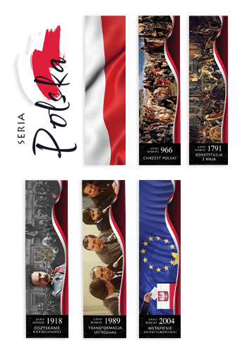Nieważne, w jakim zakątku świata żyjesz. Te zakładki już zawsze będą ci przypominały o tym, gdzie bije twoje serce! Poznaj naszą najnowszą, unikatową serię zakładek patriotycznych. Każda z nich przypomina o innym ważnym wydarzeniu lub symbolu, który jest związany z naszą ojczyzną. W zestawie aż sześć unikalnych wzorów, które chwytają za serce lub zachęcają do wspomnień i rozważań o Polsce i jej skomplikowanej historii. Oto wydarzenia i symbole, które umieściliśmy na patriotycznych zakładkach: • flaga państwowa, • chrzest Polski, • Konstytucja 3 maja, • odzyskanie niepodległości, • transformacja systemowa, • wejście do UE. Pamiętaj, że zakładki nie są sprzedawane pojedynczo. To oznacza, że możesz mieć od razu całą kolekcję. To ty zdecydujesz, co zrobisz ze wszystkimi zakładkami. Być może zechcesz sprezentować którąś z nich osobie, która wyjątkowo tęskni za swoim krajem, językiem i znajomymi twarzami? Ważne! Seria zakładek patriotycznych jest limitowana! Nie planujemy dodruków, dlatego lepiej już teraz dołóż ją do swojego koszyka. Niech kawałek Polski zawsze będzie przy tobie! OPISY WZORÓW Flaga państwowa Piękno naszego kraju zapisane jest na naszej fladze. Biel oznacza czystość i niewinność. Z kolei czerwień to symbol krwi, jaką przelali nasi przodkowie, abyśmy mogli żyć w wolnym kraju. Nierzadko na fladze Polski umieszczane jest także nasze godło, czyli orzeł biały w koronie. Trudno nie poczuć dumy patrząc na te symbole! Chrzest Polski 966 roku jest rokiem symbolicznym w historii Polski. To właśnie wtedy Mieszko I przyjął chrzest. Od tego momentu zaczął się proces chrystianizacji naszego kraju. Co więcej, niektórzy historycy uważają, że to właśnie chrzest Polski jest wydarzeniem, które zapoczątkowało rozwój naszego narodu. Na prezentowanej przez nas zakładce widnieje fragment obrazu Jana Matejki pt. „Zaprowadzenie Chrześcijaństwa”. Artysta, zainspirowany tym ważnym w historii Polski wydarzeniem, namalował go w 1889 roku. Konstytucja 3 maja 3 maja 1791 roku Polska doczekała się swojej własnej konstytucji. Był to drugi (po Stanach Zjednoczonych) kraj, w którym ustanowiono taki dokument. Dokładnie 100 lat później Jan Matejko namalował swój jeden z najbardziej znanych obrazów pt. „Konstytucja 3 maja 1791 roku”. Obecnie znajduje się on w zbiorach Zamku Królewskiego w Warszawie. Odzyskanie niepodległości 123 długie lata. To właśnie tyle Polska przebywała pod obcymi zaborami. Jednak 11 listopada 1918 roku wszystko się zmieniło. Polska znowu stała się wolnym i niezależnym od niczyich wpływów krajem. W tym dniu Polacy witali Józefa Piłsudskiego wiwatami, bo to właśnie on został mianowany naczelnym dowódcą wojsk naszego kraju. Transformacja systemowa Obrady Okrągłego Stołu, a zaraz po nich pierwsze częściowo wolne wybory, które odbyły się 4 czerwca 1989 roku. To właśnie te dwa wydarzenia zapoczątkowały transformację systemową w naszym kraju. W Polsce zaczęło się zmieniać wszystko: od gospodarki, aż po mentalność. Dzięki wszystkim tym transformacjom, które wydarzyły się przez te ponad 33 lata, możemy mówić o tym, że żyjemy w wolnym i dobrze rozwiniętym kraju. Wejście Polski do UE 1 maja 2004 roku Polska dołączyła do Unii Europejskiej – organizacji międzynarodowej, której zadaniem jest między innymi dbanie o bezpieczeństwo i wolność obywateli. Dzięki temu nasz kraj ma realny wpływ na to, jak wygląda polityka międzynarodowa czy też gospodarka. Obecność w Unii Europejskiej pomaga nam również zacieśniać więzi z innymi krajami członkowskimi.