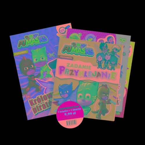 Idealny zestaw na spokojne popołudnie lub aktywny poranek z Pidżamersami! Nocne przygody superbohaterów czekają! W tym zestawie znajdziesz dwie książeczki pełne zadań i wyzwań, które zabiorą Twoje dziecko do świata Pidżamersów. "Królowa piratów" – książeczka z zabawą „Odszukaj różnice” rozwija spostrzegawczość i koncentrację. "Zadanie Przyklejanie" – ulubieni bohaterowie i naklejki sprawiają, że nauka przez zabawę to czysta przyjemność.