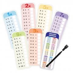 Dodatkowo w zestawie znajduje się karta z pełną tabliczką mnożenia i wynikami, która może posłużyć dziecku jako wzór do sprawdzenia poprawności obliczeń w razie trudności.