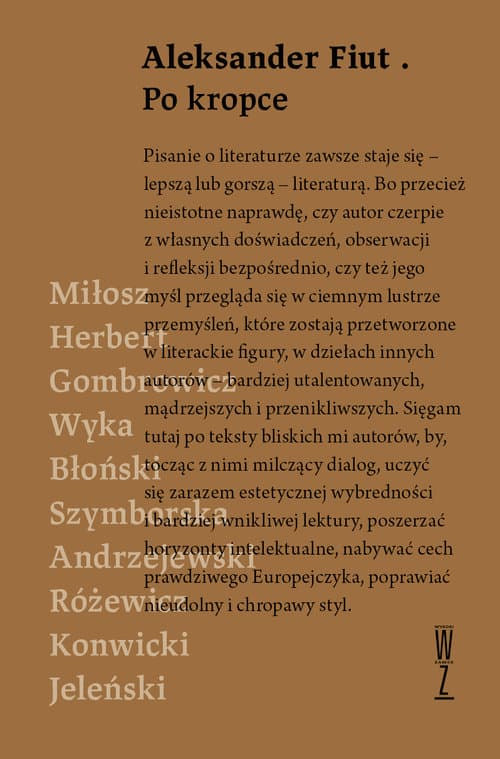 Miłosz, Herbert, Gombrowicz, Konwicki, Szymborska, Wyka, Błoński, Andrzejewski, Różewicz, Jeleński – mogłoby się wydawać, że o tych pisarzach i ludziach kultury napisano już prawie wszystko. Doczekali się oni własnych biografii, naukowych artykułów, przeprowadzono z nimi dziesiątki wywiadów. Książka Aleksandra Fiuta zadaje jednak kłam temu twierdzeniu. Stawiając nowe pytania, przedstawia ich w innym świetle, na nowo interpretuje stare ustalenia dotyczące ich samych, jak i dzieł przez nich napisanych. Autor zadaje swoim mistrzom pytania dotyczące najważniejszych problemów tożsamościowych, religijnych i literackich przełomu XX i XXI wieku. Są to pytania trudne i skomplikowane, zadane jednak w sposób nieraz niezwykle dociekliwy, przewrotny i zmuszający do namysłu. Eseje i studia Aleksandra Fiuta mają charakter bardzo osobisty. Książka napisana jest z wielką erudycją i pięknym stylem, skierowana zarówno do badaczy literatury, jak i każdego czytelnika zainteresowanego szeroko pojętą kulturą słowa. Wydanie książki zostało dofinansowane ze środków Ministerstwa Kultury i Dziedzictwa Narodowego oraz Programu Rozwoju Czytelnictwa.