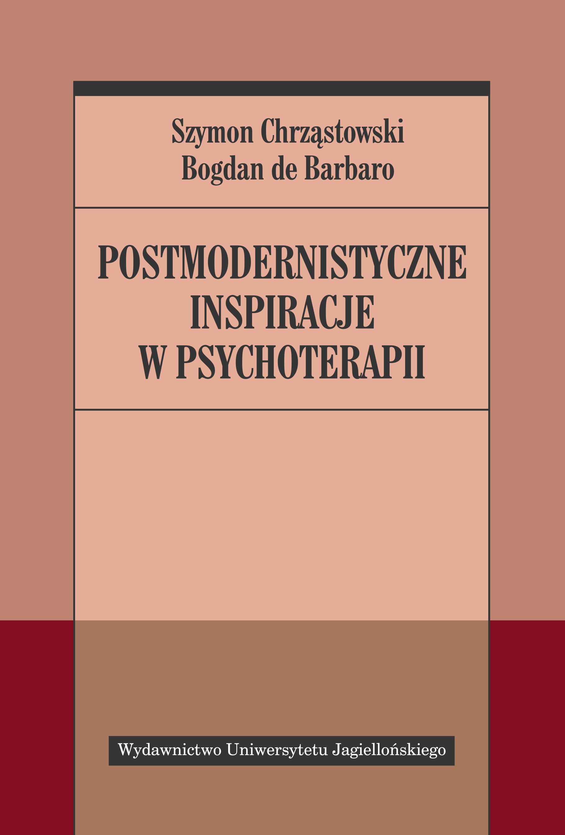Książka Szymona Chrząstowskiego i Bogdana de Barbaro jest kompetentnym i świetnie napisanym wprowadzeniem do nowych, postmodernistycznych podejść w psychoterapii. (...) Publikacja z pewnością przyciągnie szerszy krąg odbiorców nie tylko psychoterapeutów i osoby szkolące się w psychoterapii, lecz także badaczy i studentów nauk społecznych oraz humanistycznych, intelektualistów zaciekawionych nowymi ujęciami, zapewne też osoby nieprofesjonalnie zainteresowanie pomaganiem, np. pacjentów i ich bliskich. (...) Nie ma wątpliwości, ze Autorzy znają z doświadczenia to, o czym piszą, i potrafią abstrakcyjne pojęcia teoretyczne przełożyć na przykłady konkretnych zjawisk i sytuacji z życia (nie tylko z życia terapeuty). (...) Nie bez znaczenia jest też to, że książkę napisano swobodnym, bogatym językiem, pełnym metafor oddających nie tylko słownikowy sens, ale i ducha opisanych pojęć i praktyk. Fragmenty recenzji dr hab. Katarzyny Stemplewskiej-ŻakowiczSzczegółowe informacje na temat książki Postmodernistyczne inspiracje w psychoterapii