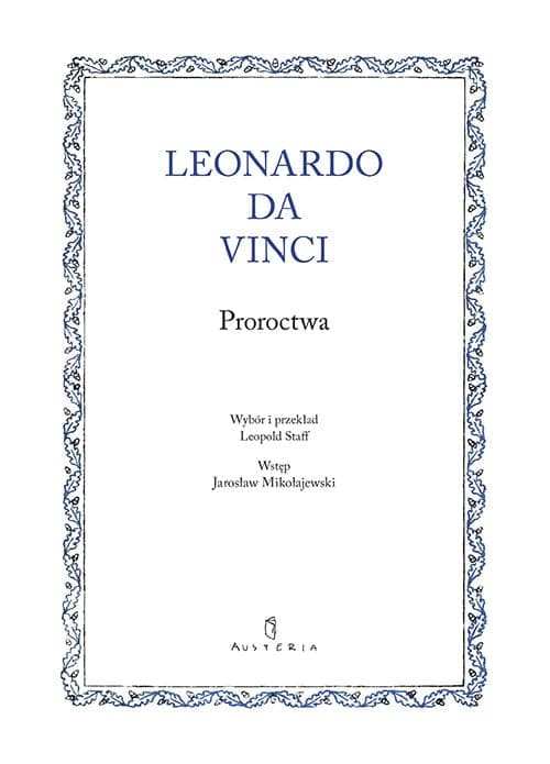 „Rzec by można – natura oszalała. Gdyby nie to, że dużo proroctw Leonarda da ­Vinci już się spełniło, właśnie spełnia się na naszych oczach i naszych organizmach, a wiele wskazuje, że inne, te najstraszniejsze, niebawem się spełnią. «Porzućcie wszelką nadzieję wy, którzy wchodzicie», powtórzy za Dantem ktoś, kto ma już za sobą lekturę profecji. Ale powtórzy to z oniemiałym przejęciem, z dreszczem i zadziwieniem. Przecież siłą tego gatunku – który Leonardo uprawiał równolegle z innymi drobiazgami, jak bajki czy aforyzmy – jest to, że nasze małe i wielkie apokalipsy, które znajdziemy w tej książce (Księdze) wydają się nam spełnione lub prawdopodobne, na pewno bardziej, niż mogły wydawać się jego współczesnym. (…) Leonardo wie, bo widzi, jakie jest przeznaczenie tego, co człowiek może pomyśleć, czego pragnąć, w czym i z czym eksperymentować. Kataklizmy, horrory, przewroty wyrastają z ciemnego ziarna tego, czym człowiek jest. Jeśli może – człowiek, sprawca rzeczy, które dzieją się w proroctwach artysty – zmienić się w Boga, ustanowić kapryśnie własne reguły, poddać świat, siebie i bliźnich szalonej próbie, dzikiemu doświadczeniu, zrobi to. I właśnie na tym, na ludzkiej perwersji, opiera Leonardo swoje wizje. Dopowiada ich skutki i kres”. (ze wstępu Jarosława Mikołajewskiego)