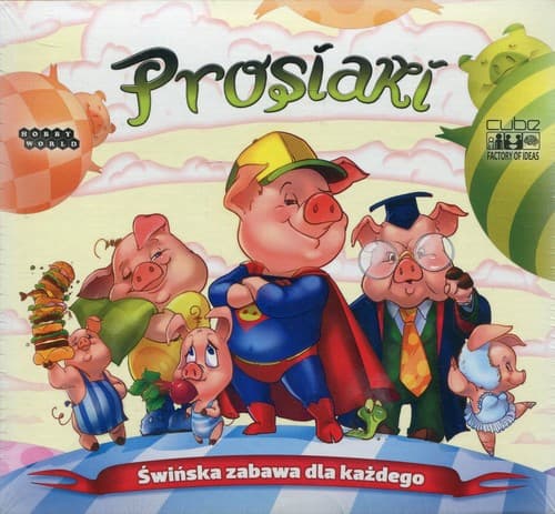 Prosiaki to fajna, wesoła gra rodzinna. Proste zasady, dynamika rozgrywki oraz śmieszne grafiki - sprawiają, że gra chwyta za serca małych i dużych. Pozbądź się wszystkich swoich kart, zanim zrobią to inni. Pomoże Ci w tym zespół Super Prosiaków. Kim są nasi Super Bohaterowie? Poznaj chciwego i zachłannego Żarłoka; zakręconą Balerynę, która kręci piruety; wiecznie śpiącego Chrapka; Barwnika - przystosowującego się do każdych warunków; cichego, jak myszka - Milczka; Stompka, który lubi bawić się z przytupem i Bystrzaka - najmądrzejszego i najbardziej kreatywnego prosiaka w ekipie. Zawartość: 56 super kart z Prosiakami 64 zwykłe karty z liczbami. Wiek 5+ Liczba graczy 3-10