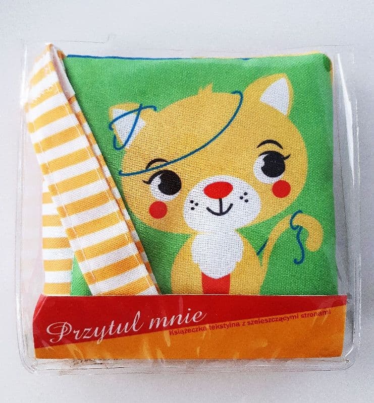 Seria obrazkowych książeczek dla najmłodszych dzieci, wykonanych z tkaniny. Piękne, kolorowe ilustracje zwierzątek zachęcą dzieci do poznawania otaczającego je świata. Ostatnia strona książeczki ma wbudowaną wewnątrz szeleszczącą folię. Każda książeczka wyposażona jest w paseczek z rzepem, który umożliwi rodzicowi przyczepienie książeczki do wózeczka, by dziecko zawsze mogło ją mieć ze sobą. Książeczki zapakowane w foliową torebkę z headerem z eurodziurką zapinaną na nap .Szczegółowe informacje na temat książki Przytul mnie - Kotek