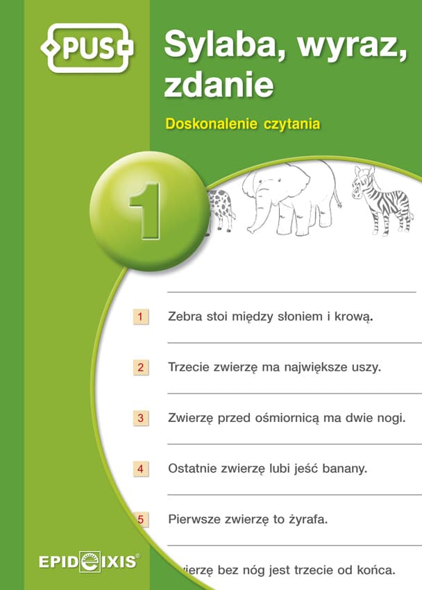 Sylaba, wyraz, zdanie 1 to pierwsza część zupełnie nowej serii książeczek PUS, których celem jest doskonalenie u dzieci umiejętności czytania. Serię tę opracowano z myślą o dzieciach, które rozpoczęły już naukę czytania i opanowały jej podstawy, ale jeszcze nie na tyle, by samodzielnie czytać dłuższe teksty. Książeczki mają służyć rozwijaniu i doskonaleniu umiejętności samodzielnego płynnego czytania. Mogą być przydatne w: