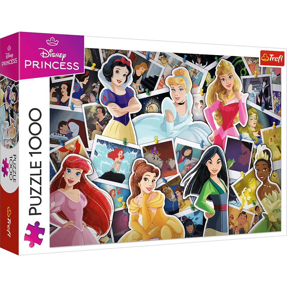 Puzzle Księżniczki Disneya, składające się z 1000 elementów, przedstawiają kolaż z bohaterkami bajek Disneya.