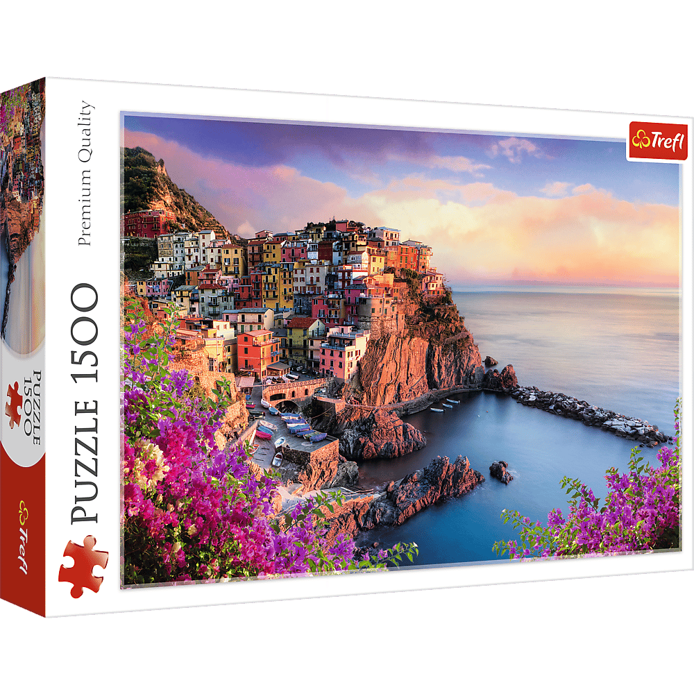 Puzzle 1500 elementów z widokiem na przepięknie położoną włoską miejscowość Manarola. Po ułożeniu powstanie obrazek