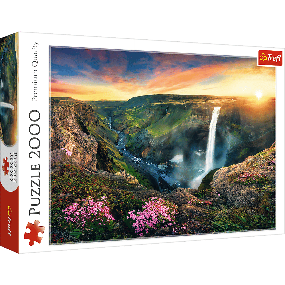 Puzzle 2000 elementów z przepięknym widokiem na wodospad Haifoss w Islandii.