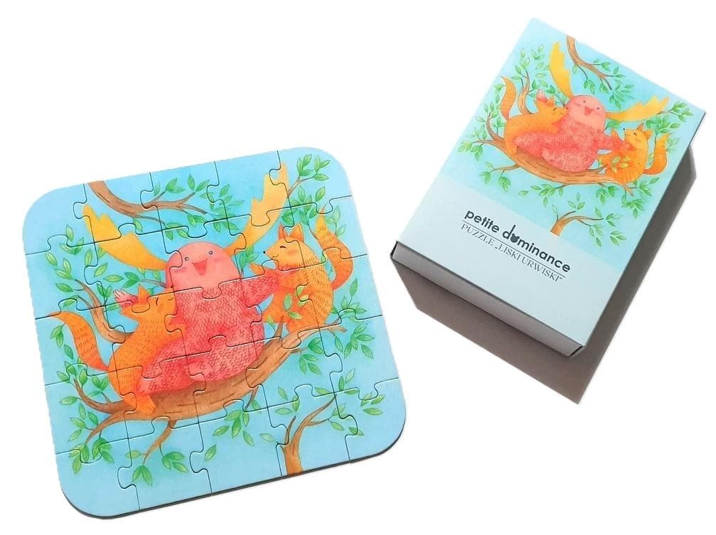 Puzzle dla dzieci "Liski Urwiski" to wyjątkowa zabawka oparta na autorskich ilustracjach Dominiki Gołąb. Ta układanka składa się z 25 elementów i ma wymiary 19x19 cm. Dzięki kolorowym i uroczo przedstawionym postaciom lisków, puzzle zapewniają nie tylko rozrywkę, ale również rozwijają umiejętności logicznego myślenia i spostrzegawczości u najmłodszych. To doskonały sposób na budowanie koncentracji i cieszenie się wspólną zabawą w rodzinie. Odkryj magię "Lisków Urwisków" i pozwól swojemu dziecku rozwinąć kreatywność i umiejętności poznawcze!