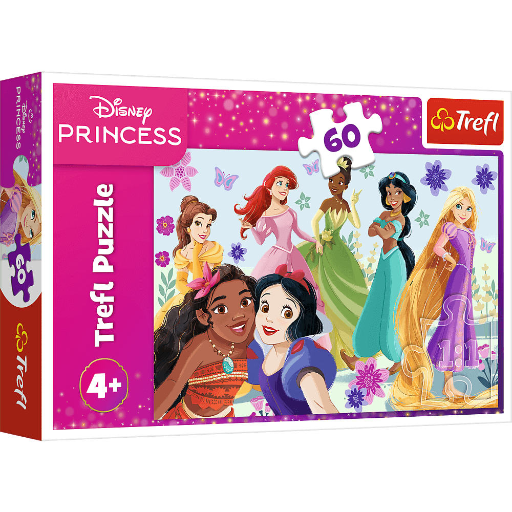 Księżniczki w akcji to puzzle składające się z 60 elementów, zaprojektowane z myślą o małych fanach bajki Księżniczki.