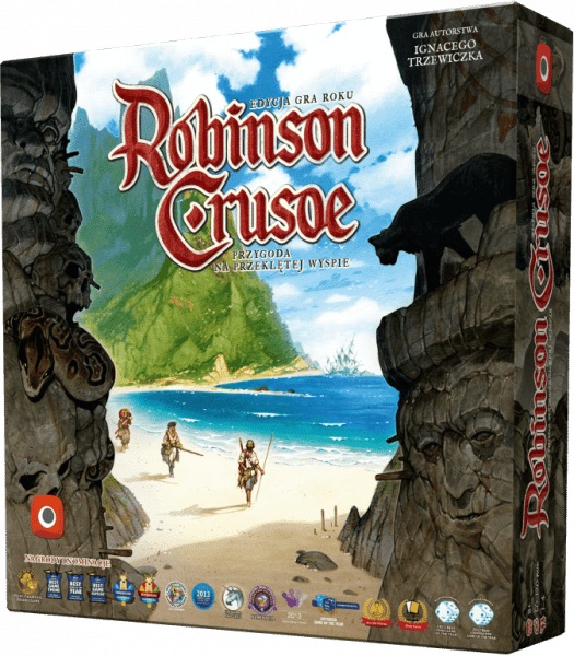 Robinson Crusoe: Adventure on the Cursed Island to nowa wielka gra Portalu. Tym razem porywamy was na bezludną wyspę i rzucamy w wir niezwyklych przygód, które przytrafią się grupie rozbitków! Będziecie budować szalas, palisadę, bronie, będziecie tworzyć przedmioty, będziecie starać się robić co w waszej mocy, by… by przetrwać. Będziecie szukać pożywienia, walczyć z bestiami, chronić się przed złą pogodą… Wciel się w rolę jednego z czterech członków załogi statku (kucharza, stolarza, odkrywcy lub żołnierza) i staw oko przygodzie. Użyj zdolności, by pomóc kompanom, przedyskutuj plan działania i wciel go w życie! Szukajcie skarbów. Odkrywajcie tajemnice wyspy. Realizujcie cele jednego z sześciu pasjonujących scenariuszy. Zacznijcie od budowy i podpalenia stosu drewna, by wezwać pomoc, a następnie przejdźcie do kolejnych przygód. Zostańcie egzorcystami na przeklętej wyspie. Zostańcie łowcami skarbów na wyspie wulkanów. Wcielcie się w rolę ratowników i uratujcie piękną damę, która utknęła na samotnej skale daleko od brzegu… Daj się porwać przygodzie! Robinson Crusoe: Adventure on the Cursed Island to wspaniała gra kooperacyjna, która ożywia młodzieńcze marzenia, rozpala wspomnienia z lektury powieści Juliusza Verne’a czy Daniela Defoe. Proste reguły wspaniale komponują się z pasjonującym tematem i porywają was ku wspaniałej przygodzie. Przygotuj się na kolejne wspaniałe pudło ze stajni Portalu! Zawartość pudełka: 55 kart o wymiarach 44x68mm, 220 kart o wymiarach 58x88mm, 30 naklejek, 12 kości, 11 kafelków wyspy, 134 żetony, min. 81 drewnianych znaczników, 20 pionków, 4 dwustronne karty scenariuszy, 4 dwustronne karty postaci, znacznik pierwszego gracza, plansza, instrukcja Wiek graczy: 8+ Liczba graczy: 1-4 Czas rozgrywki: 60-120 minut