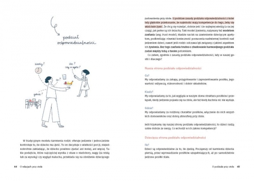 Przeczytałam w życiu kilkadziesiąt książek nt. relacji z jedzeniem i ten temat jest mi bardzo bliski również pod kątem praktycznym. Nie jest to prosta książka z wykazem produktów, które trzeba wciskać dziecku. Jest to książka, która wg mnie wielu rodzicom zmieniłaby światopogląd, jeśli by mieli na to otwartą głowę. Zgadzam się z tym, co w niej jest zawarto w słowach, rysunkach, wykresach, tabelach, obrazkach czy przykładowych dialogach! Właśnie z tego powodu, że treść dociera do nas w różny sposób, książki nie trzeba czytać od dechy do dechy (choć wiadomo - warto), lecz skupić się na tym, co nas na danym etapie zainteresuje. Z ręką na sercu polecam tę książkę wszystkim rodzicom nie tylko małych dzieci, lecz również nastolatków - jako pedagog szkolny i mama :) Jestem wzruszona, bo książka uświadomiła mi, że robimy z dobrą robotę, ale nie spoczywamy na laurach i działamy dalej!