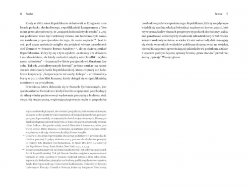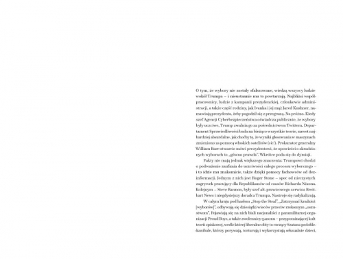 O tym, że USA nie jest rajem na Ziemi, wiemy już od dawna. Ale może być jeszcze gorzej, co wyjaśnia nam Piotr Tarczyński – przejrzyście, wciągająco, z ogromną wiedzą. Zobaczcie, dlaczego demokracja to dzisiaj tylko kolejny amerykański mit. Jakub Żulczyk Fascynująca lektura, erudycyjna i kompletna, oparta na faktach. Efekt jest oszałamiający – czytelnik zaczyna rozumieć, dlaczego w USA niewykluczona jest wojna domowa oraz inne scenariusze, tylko nieco mniej niepokojące. Agnieszka Lichnerowicz, dziennikarka Radia TOK FM Autor książki zna Amerykę. Nie zawsze się z nim zgadzam, ale zawsze go słucham i czytam. Bartosz Węglarczyk, redaktor naczelny Onetu