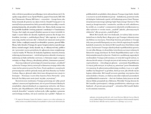 Dlaczego w Stanach Zjednoczonych wybory często wygrywają ci, którzy mają mniejsze poparcie? Tak jak Donald Trump, który został prezydentem, choć zdobył o 3 miliony głosów mniej niż Hillary Clinton. Jak to możliwe, że głosy z Kalifornii i Teksasu mają mniejszą wagę niż głosy z Wyoming i Alaski? Na czym polega amerykańska wersja liberum veto, czyli filibuster? Piotr Tarczyński, amerykanista, współautor zyskującego coraz większą popularność „Podkastu amerykańskiego”, w przystępny i błyskotliwy sposób wyjaśnia, dlaczego „najwspanialsza demokracja świata” coraz częściej okazuje się jedynie fasadą. I dlaczego radykalizująca się partia konserwatywna oddala Amerykę od demokracji i kieruje ją w stronę bratobójczej wojny. Atak na Kapitol i zanegowanie legalnych wyników wyborów mogą okazać się dopiero początkiem. Stany Zjednoczone wielokrotnie wymyślały się na nowo. O tym też jest ta książka. Może czas na nowe otwarcie?