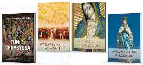 Komplet albumów o najsłynniejszych sanktuariach maryjnych: Fatimie, Lourdes i Guadalupe. Historia ojawień, opisy miejsc i postaci uczestniczących w objawieniach, mnóstwo ciekawostek oraz bogata szata graficzna zachęcają do ich poznania. Do kompletu dołączono album Tuniki Chrystusa, w którym odkryjemy tajemnicę i wątpliwości związane z dwoma czczonymi relikwiami, przechowywanymi w niemieckim Trewirze i francuskim Argenteuil.