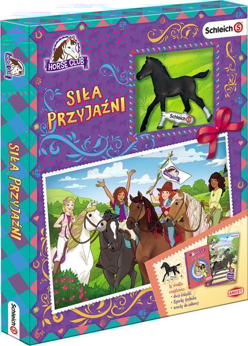 Ten wyjątkowy zestaw dwóch książek z figurką konia Schleich® to doskonały pomysł na prezent dla wszystkich fanów koni i serii Horse Club. Zawiera on zawiera szósty tom serii o przygodach przyjaciółek z Horse Clubu pt. Złote klucze oraz książkę z zadaniami i brokatowymi naklejkami. Oryginalne pudełko można wykorzystać jako scenkę do zabawy!